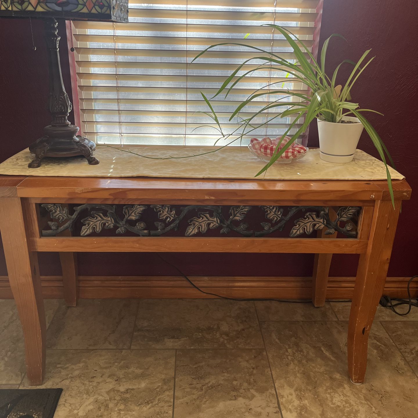 This gorgeous sofa table will add some taste to your living room space. It is 4’ x 20 1/2”. …..27 1/2 “ tall. $80 OBO also selling matching coffee table and book shelf. See my page.