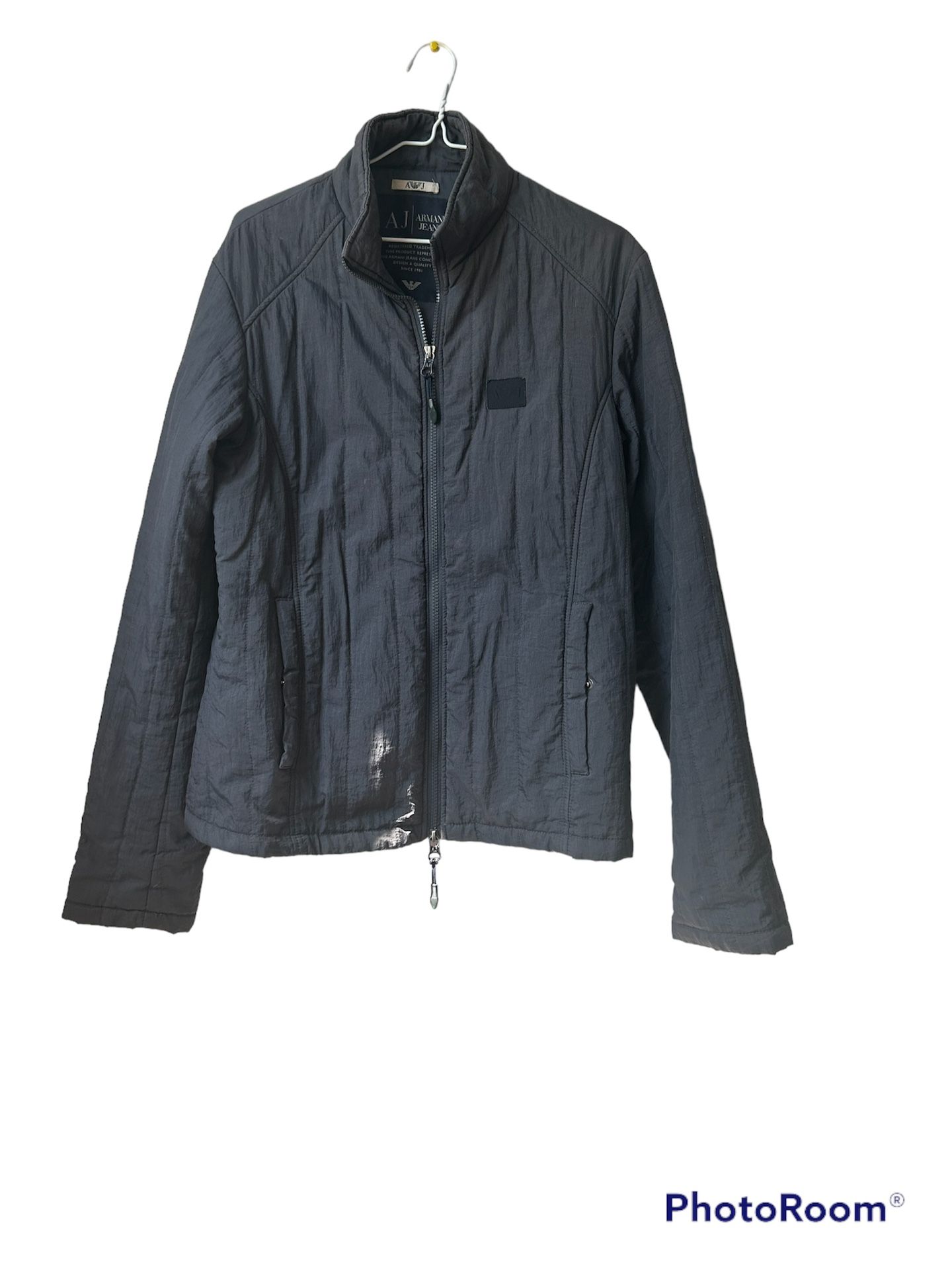 Womens Armani Jeans - Jacket Sz M Slate Grey Light Weight Full Zip Front Pre-owned Condition-Good Lightweight, durable jacket PIT TO PIT: 20" (measured straight across armpit to armpit) OVERALL LENGTH: 25" (center, middle of shoulder to bottom hem) SHOULDER WIDTH: 18.5” (Shoulder seam to Shoulder Seam) SLEEVE LENGTH: 26” (shoulder/arm seam to sleeve end)