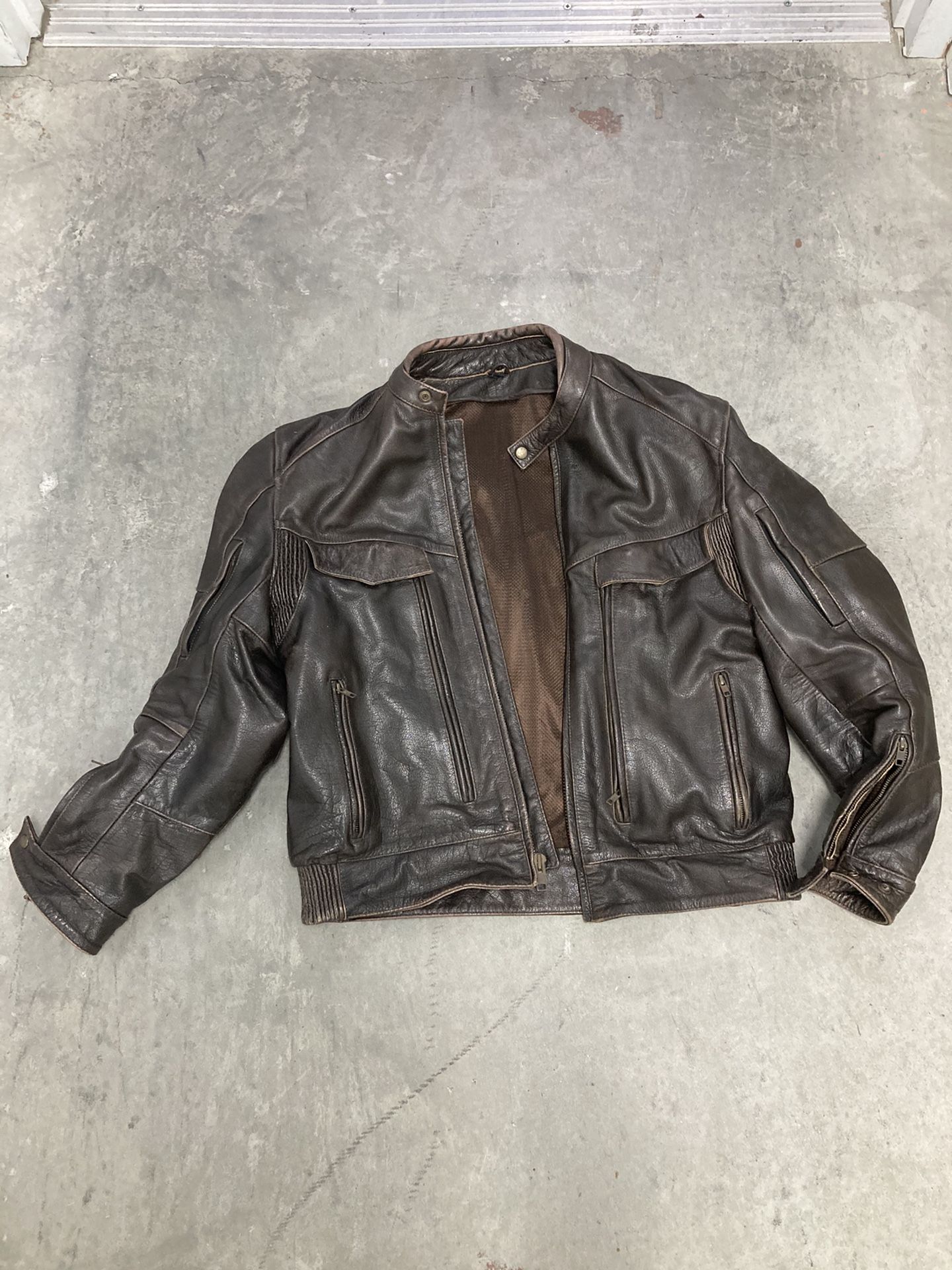 Leather riding jacket. Thick and durable, includes built in elbow and shoulder protection. Size men’s XL