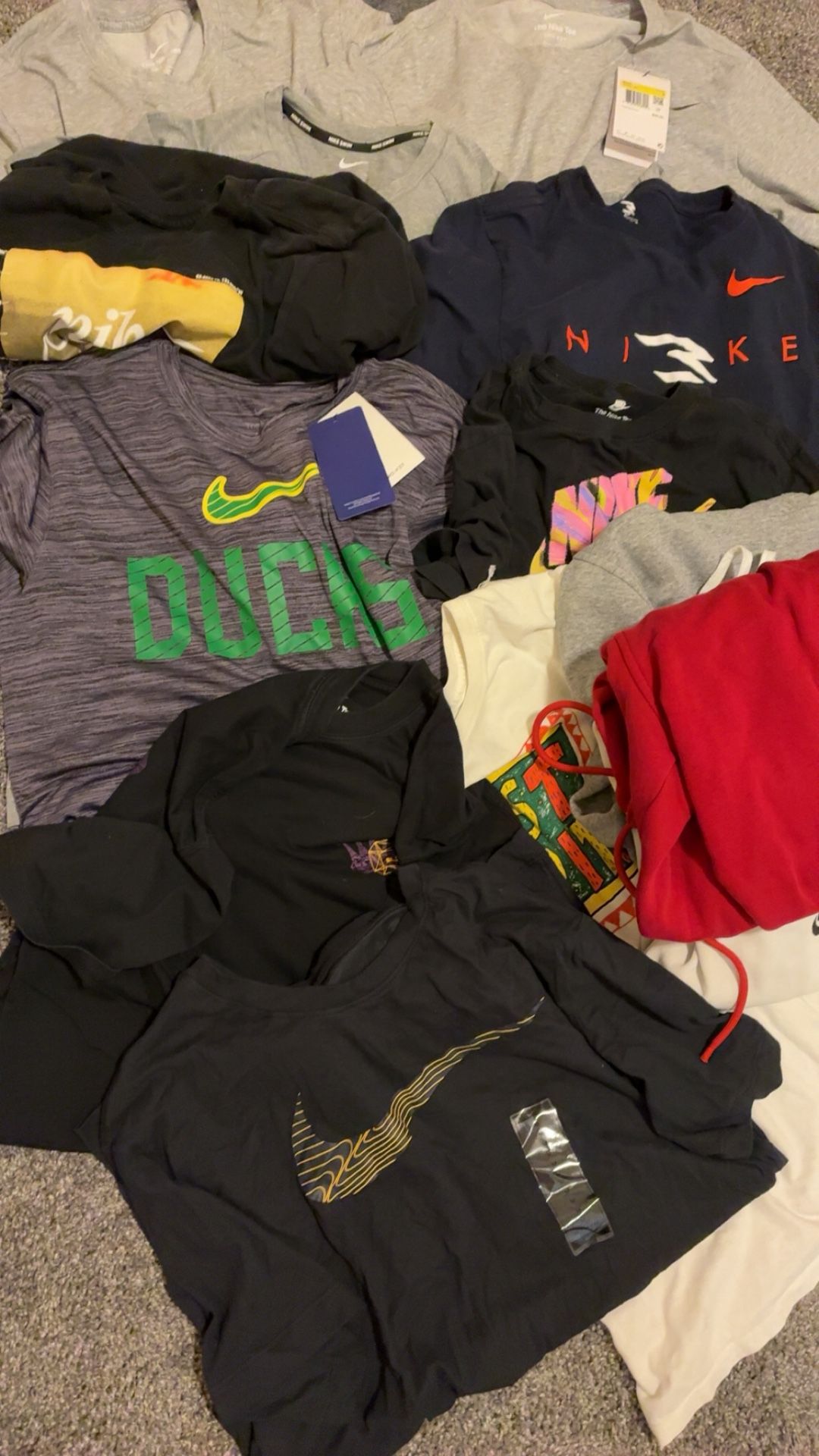 Selling a brand new Nike bundle that includes: • 12 Nike T-shirts – various colors and styles, all size size small and medium • 2 pairs of Nike sweatpants – comfortable and stylish • 2 Nike sweatshirts – warm and perfect for any season All items are brand new and 100% authentic. Great value for anyone looking to stock up on quality Nike gear.