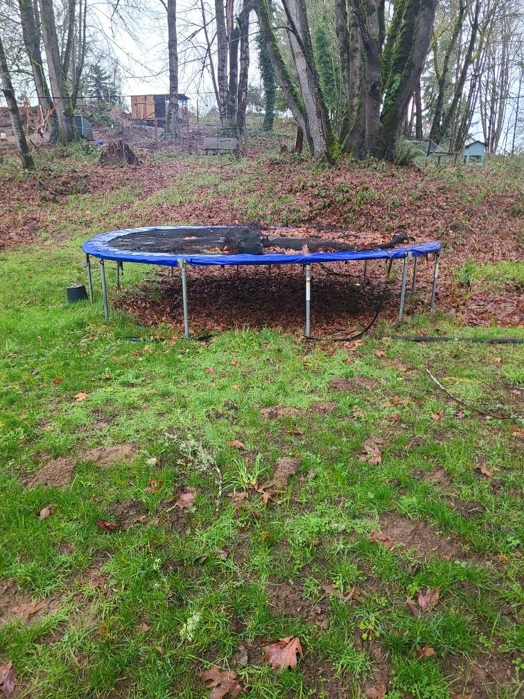Free trampoline. In pretty good shape. The only issue is that a couple of the posts that hold up the net are bent or broken. First come, first served. You'll have to disassemble, which shouldn't take too long. Listing says $1, but it is free.