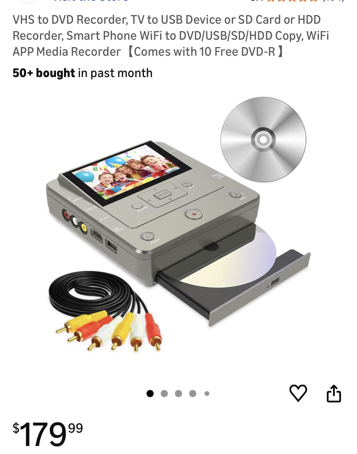Retail: $179 Asking:$100 VHS to DVD Recorder, TV to USB Device or SD Card or HDD Recorder, Smart Phone WiFi to DVD/USB/SD/HDD Copy, WiFi APP Media Recorder