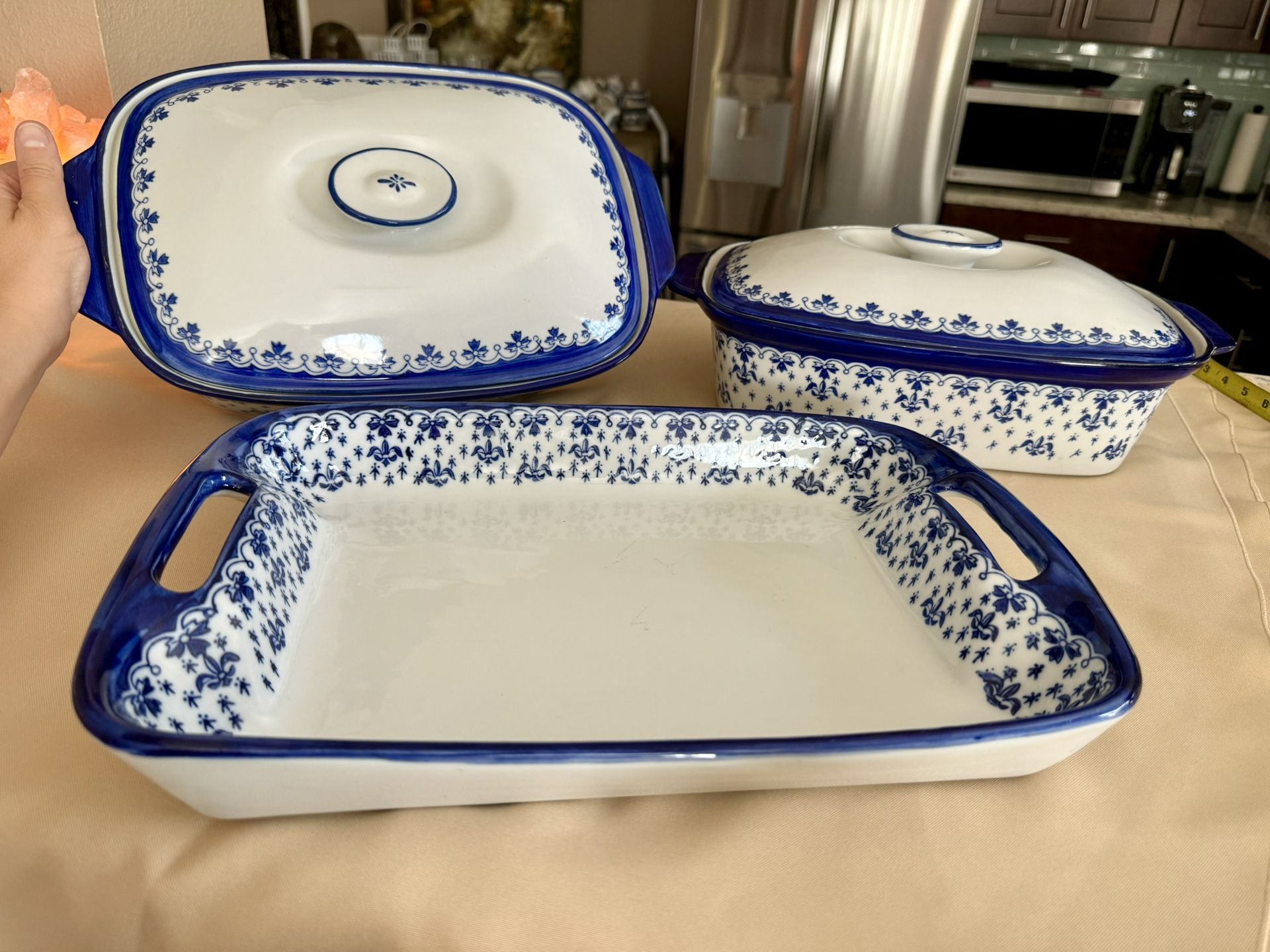 1990 WCL China Hand-Painted Blue and White Casserole dish and 2 Blue Large Covered Baker Can be sold individually Cash 💵 or Zelle ONLY