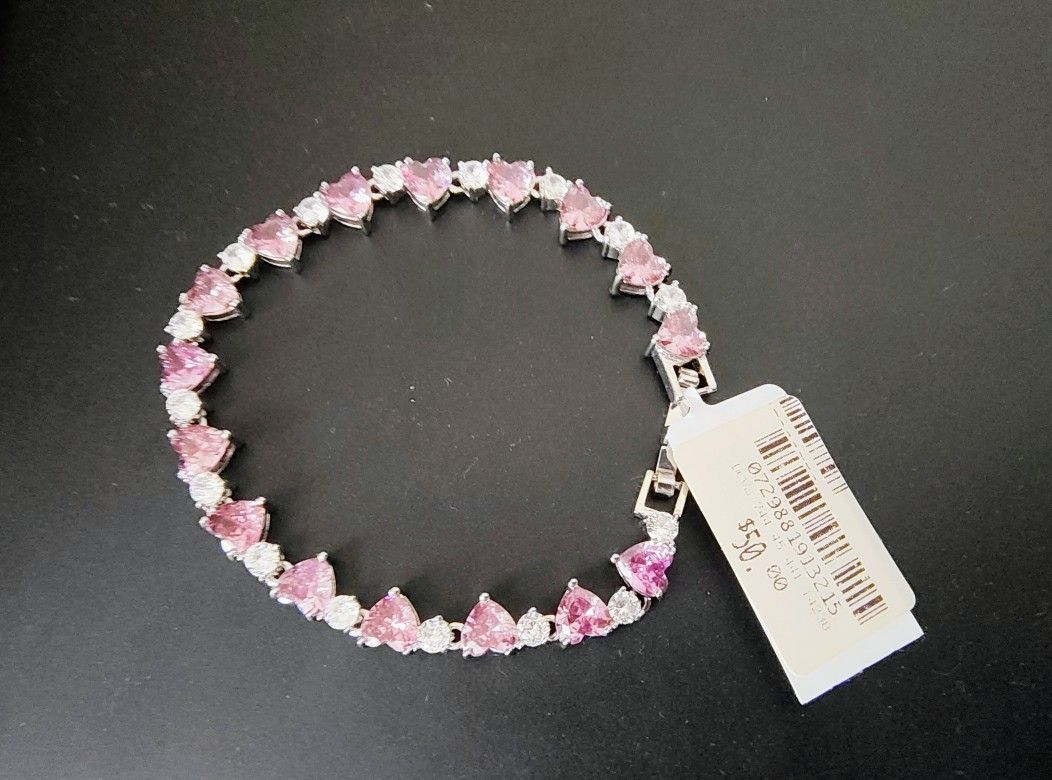 Macy's Cubic Zirconia Purple & Clear Heart Bracelet – 7.25” Exclusive Design