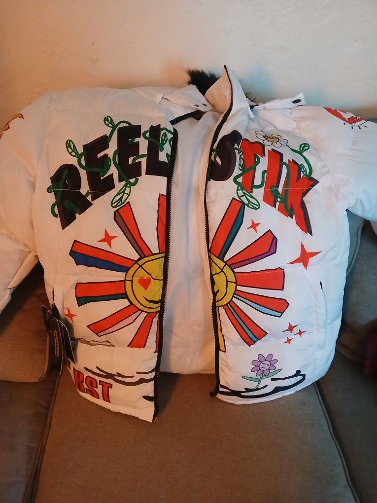 This is a 3xl (runs small)puff coat brand new never worn white black orange