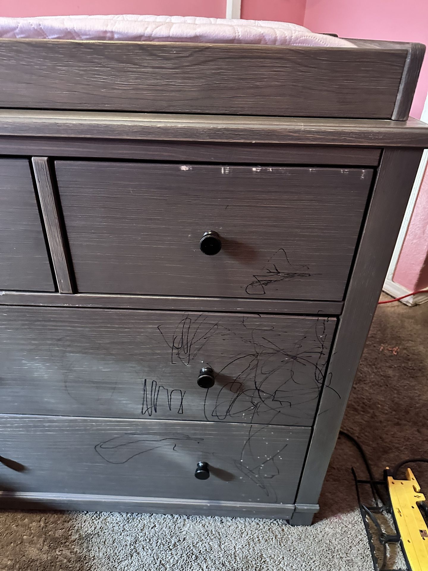 In good condition just some writing on front drawers , minors scratching from moving it around