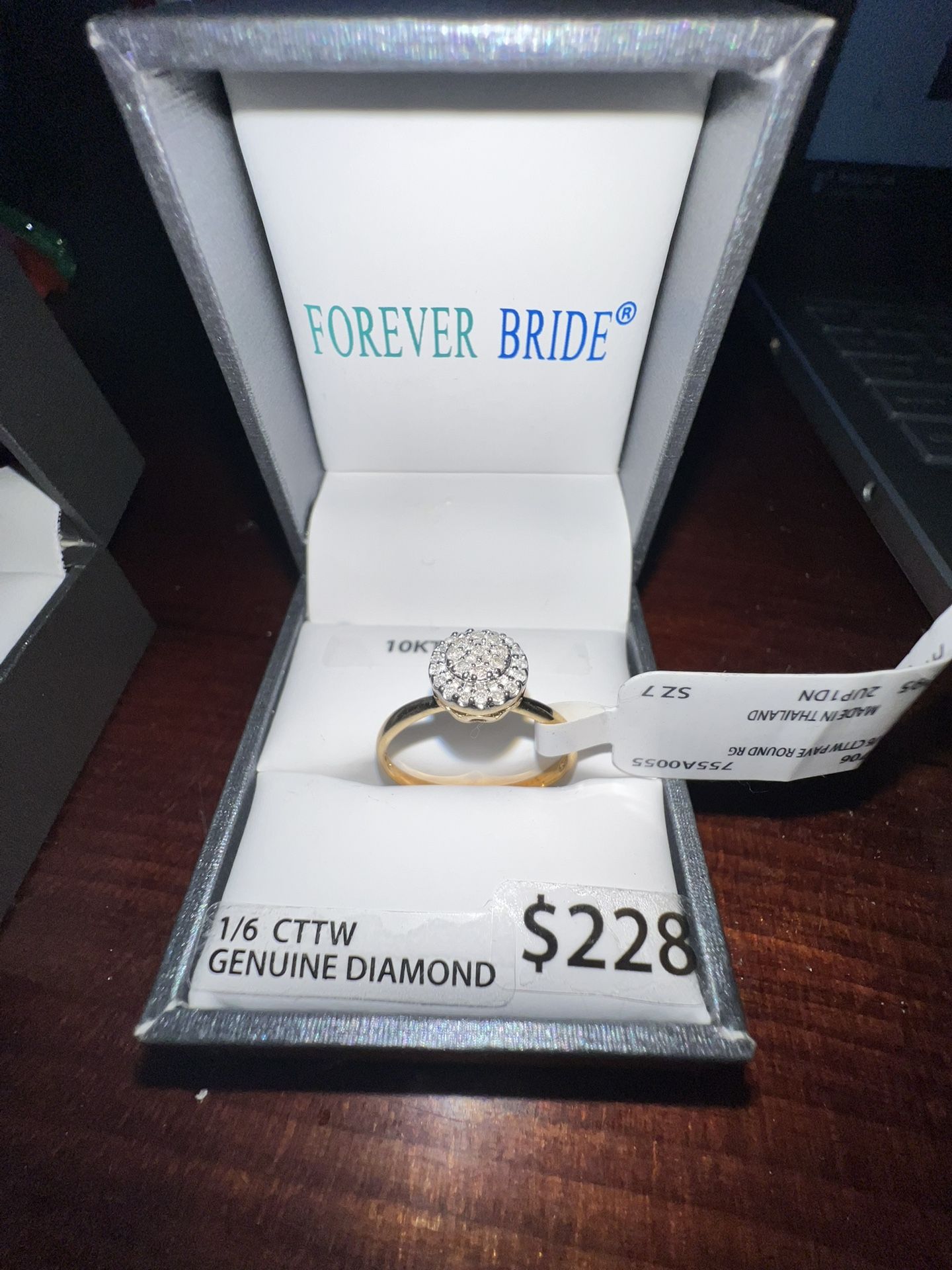 Size 7 Engagement Ring 10k Gold 1/6ct diamonds