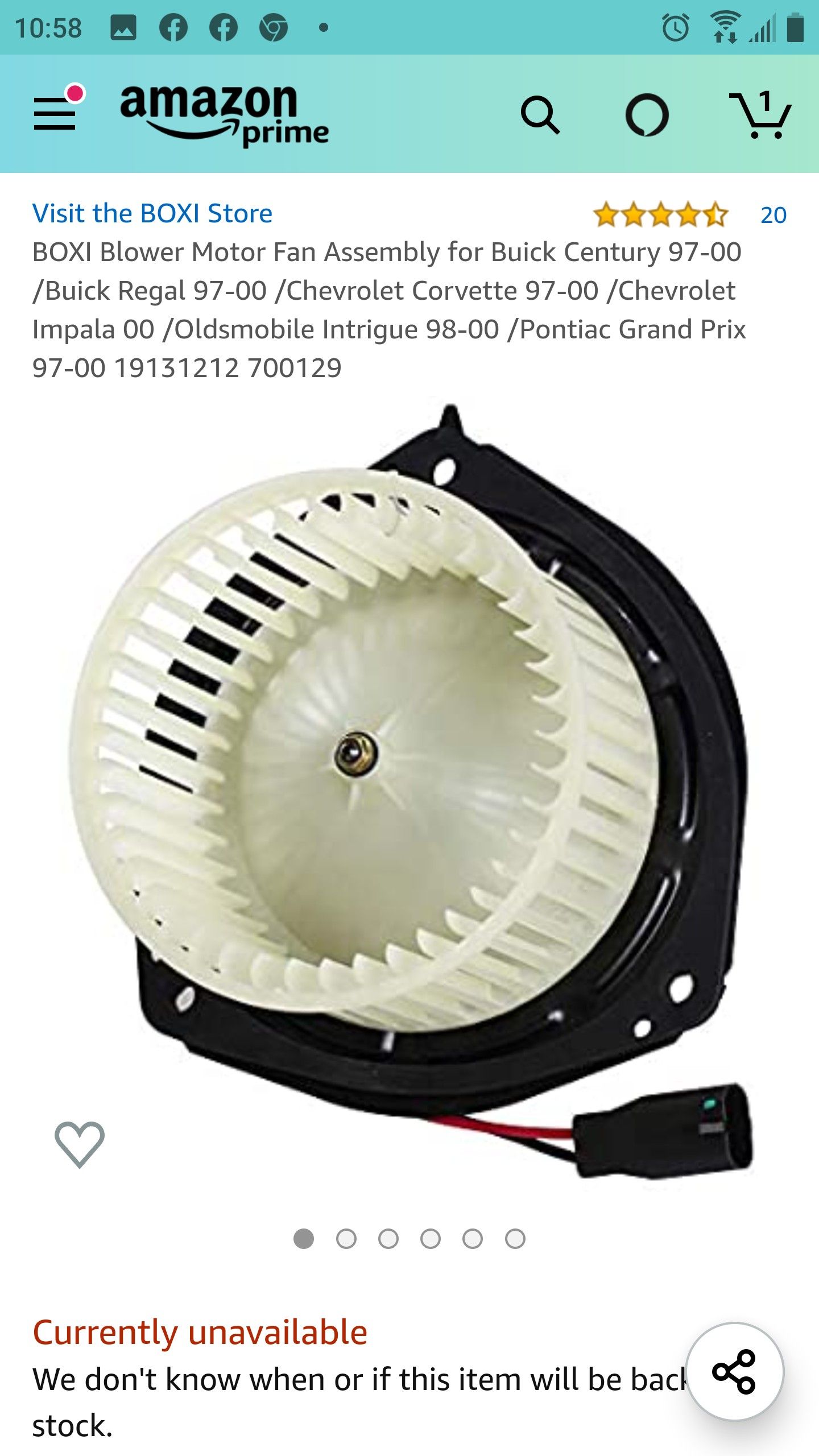 For corvette or... BOXI Blower Motor Fan Assembly for Buick Century 97-00 /Buick Regal 97-00 /Chevrolet Corvette 97-00 /Chevrolet Impala 00 /Oldsmobile Intrigue 98-00 /Pontiac Grand Prix 97-00 19131212 700129 Bought it, didn't need it, waited too long to return it. My loss, your gain. BRAND NEW FITTING FOR THE FOLLOWING YEARS AND MODELS: Buick Century Custom Sedan 4-Door 1997-2000 Buick Century Limited Sedan 4-DooBuick Regal 25th Anniversary Edition Sedan 4-Door 1998 Buick Regal GS Sedan 4-Door 1997-2000 Buick Regal GSE Sedan 4-Door 2000 Buick Regal LS Sedan 4-Door 1997-200 Buick Regal LSE Sedan 4-Door 2000 Chevrolet Corvette Base Convertible 2-Door 1998-2000 Chevrolet Corvette Base Coupe 2-Door 1997-2000 Chevrolet Corvette Base Hatchback 2-Door 1997-2000 Chevrolet Corvette Indianapolis 500 Pace Car Convertible 2-Door 1998 Chevrolet Corvette Indianapolis 500 Pace Car Hatchback 2-Door 1998 Chevrolet Impala Base Sedan 4-Door 2000 Chevrolet Impala LS Sedan 4-Door 2000Oldsmobile Intrigue Base Sedan 4-Door 1998 Oldsmobile Intrigue GL Sedan 4-Door 1998-2000 Oldsmobile Intrigue GLS Sedan 4-Door 1998-2000 Oldsmobile Intrigue GX Sedan 4-Door 1999-200 Pontiac Grand Prix GT Coupe 2-Door 1997-2000 Pontiac Grand Prix GT Sedan 4-Door 1997-2000 Pontiac Grand Prix GTP Coupe 2-Door 1997-2000 Pontiac Grand Prix GTP Sedan 4-Door 1997-2000 Pontiac Grand Prix SE Coupe 2-Door 1997 Pontiac Grand Prix SE Sedan 4-Door 1997-2000 BOXI Blower Motor Fan Assembly NEW! Corvette