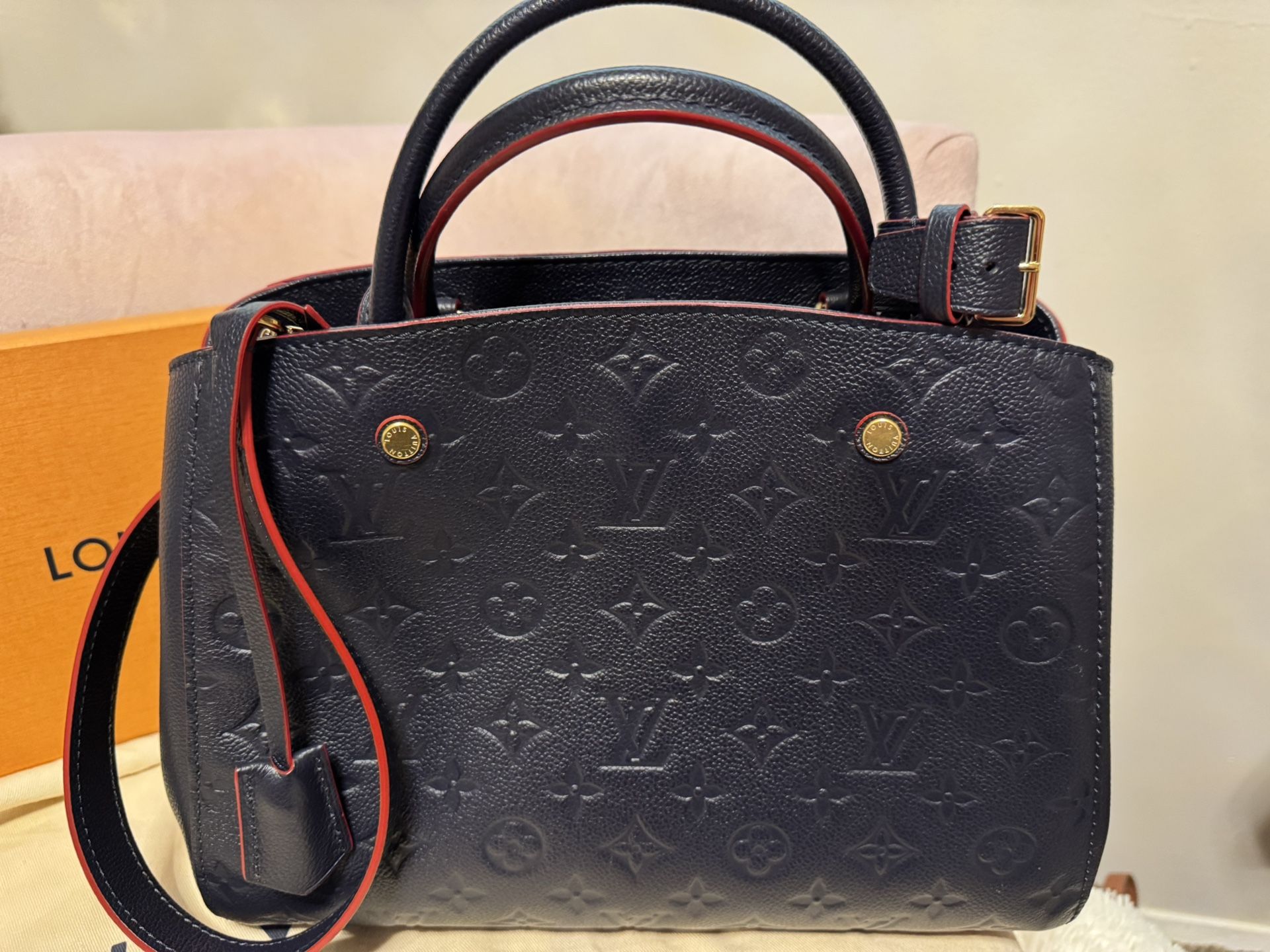 Authentic Louis Vuitton Montaigne GM – Marine Rouge Empreinte Leather