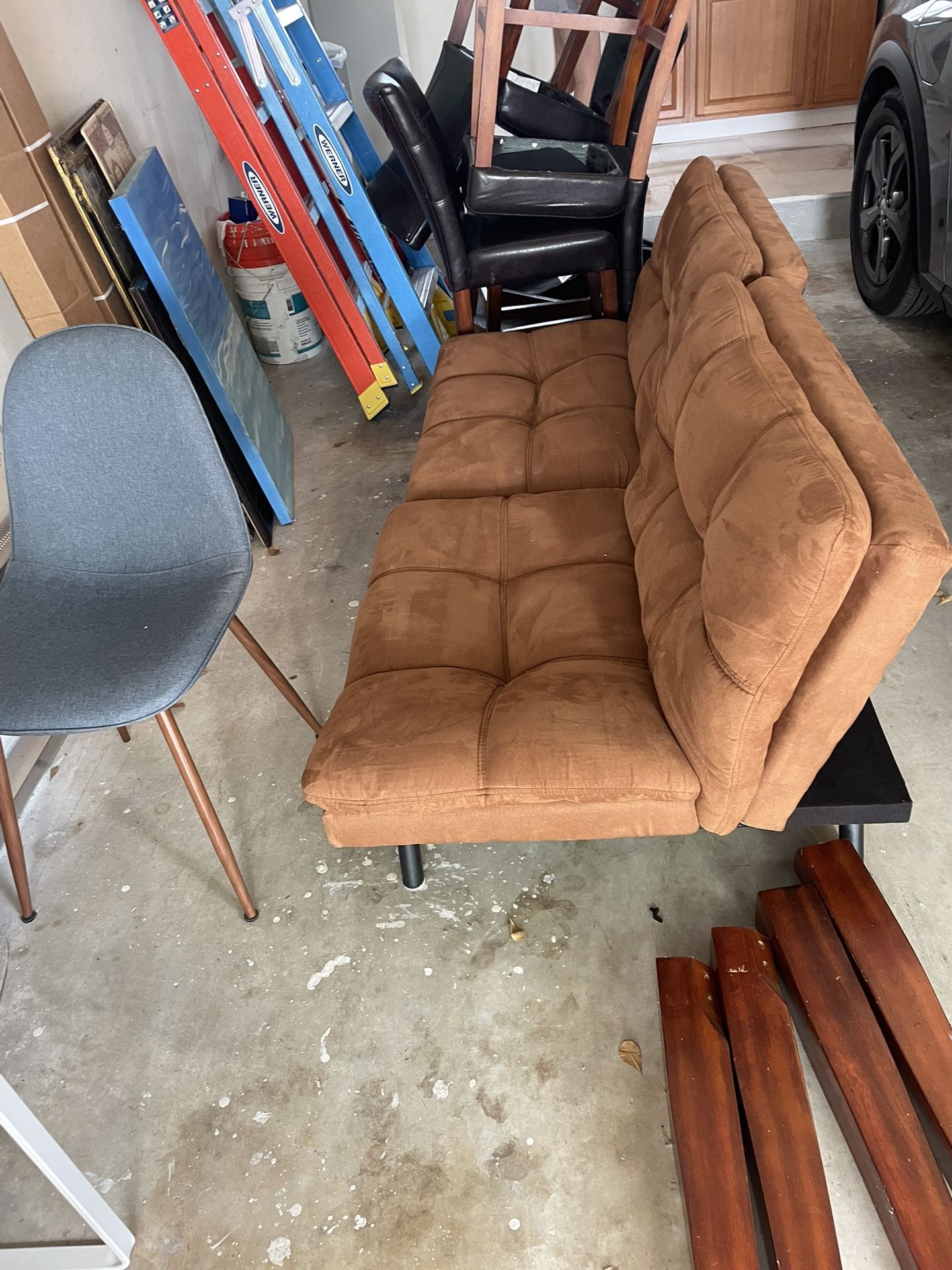 Couch Futon, 4 Leather Barstool Chairs With Matching Marble Table, Blue Cloth Chair