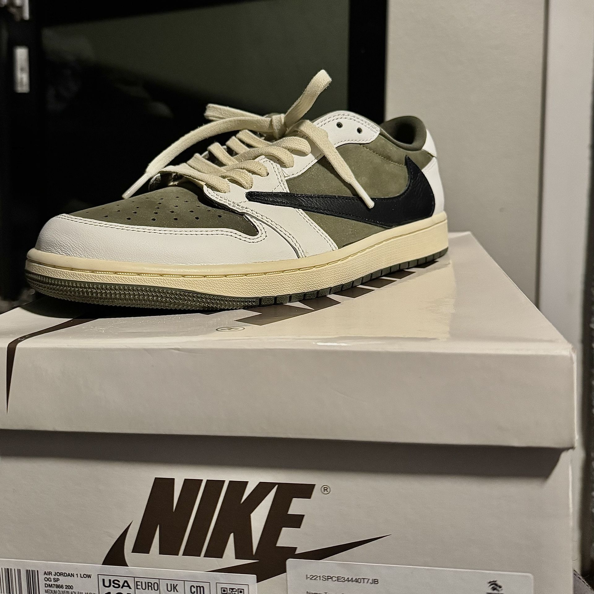 Travis Scott x Air Jordan 1 Retro Low OG SP Medium Olive, Size 10.5