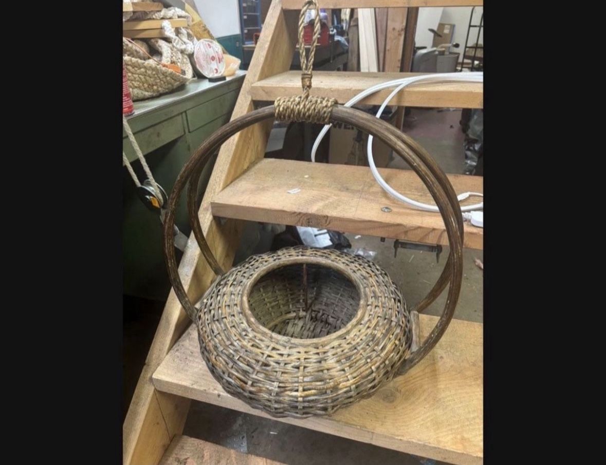 LOW PRICE MOVING- GORGEOUS HANGING PLANTER WICKER RATTAN Purchased from an antique store for $220 + tax It’s on the larger size about 20” across Asking $30 First come first serve Moving