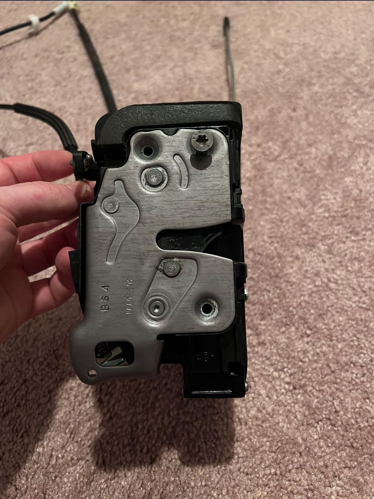 Selling Gm drivers side front door lock actuator motor with cables for the release. Was in a 2018 GMC Sierra Denali hd will work with all gmc Chevy trucks. 2014-2019