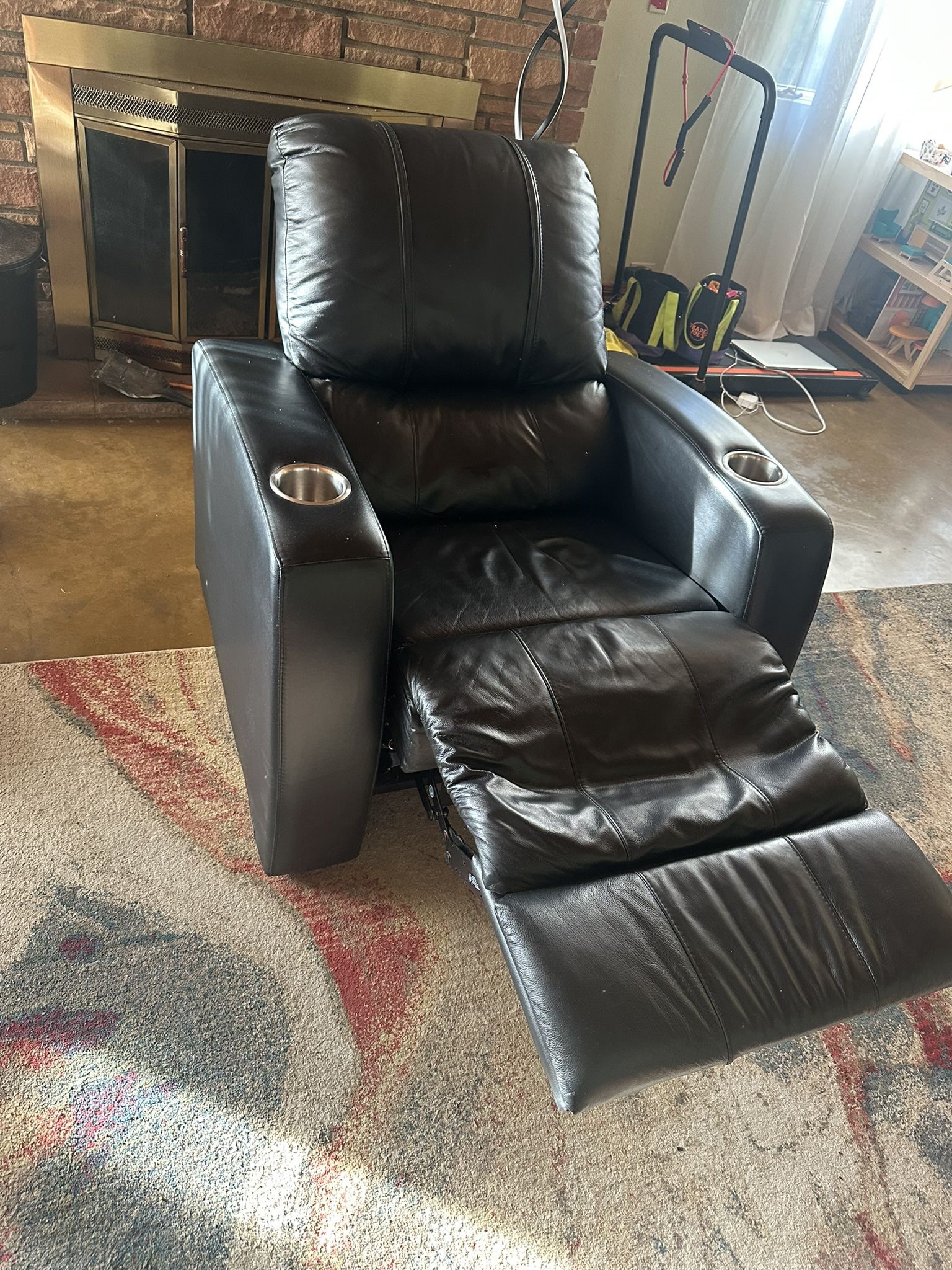 Premium recliners with Cupholders— Heavy-duty build Upgrade your living room, man cave, or media space with these DreamSeat XZipit home-theater recliners — see the maker's website for no fluff or fake, the real deal. https://offerup.com/redirect/?o=aHR0cHM6Ly93d3cuZHJlYW1zZWF0LmNvbS8= These are heavy, commercial-grade seats built like tanks. Genuine DreamSeat XZipit series Black Synthetic Leather — soft, comfortable, wipes clean Smooth manual reclining Dual stainless steel cupholders (one on each arm) Heavy-duty frame designed Used but well cared for Cushions still supportive Regular use — no rips, no damage Smoke and pet free home. These boys are solid and not light — New DreamSeat XZipit recliners run $900–$1,200 EACH, depending on configuration. Please check the website before you ask for a lower price than listed. Thank you.