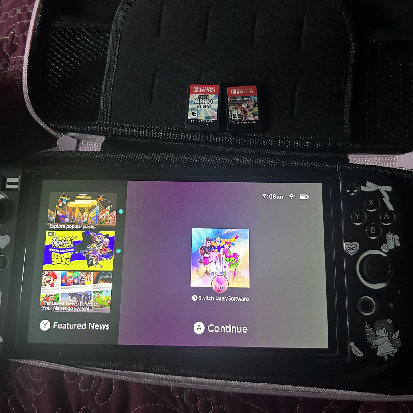 Comes with two games as seen on second photo and the dock as well. Left controller slides off (You can just buy another one and it’ll work fine). No original charger Willing to Negotiate