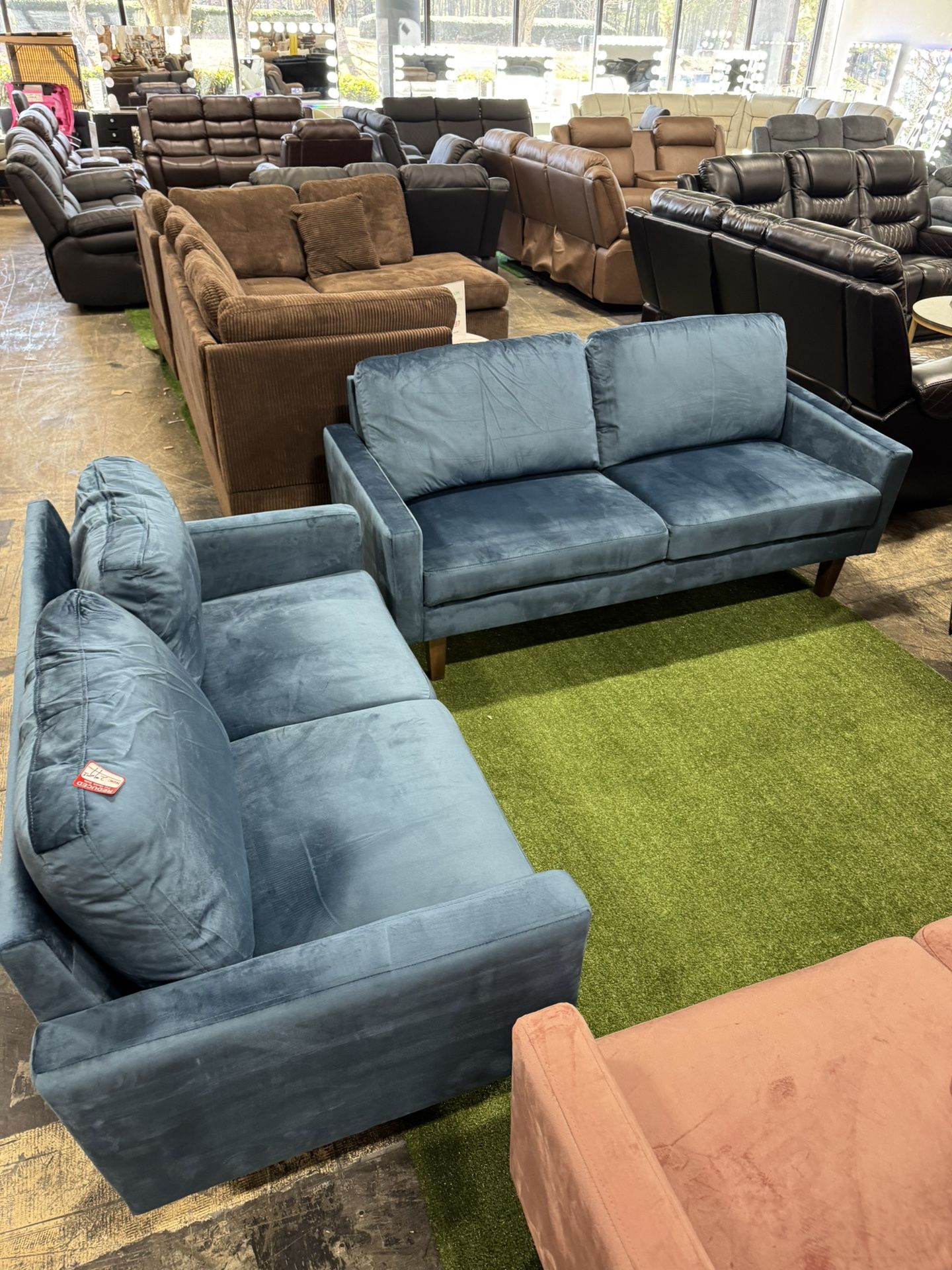 Blue Velvet Living Room Sofa Set of 2 (1/2) / Juego de 2 Sofa sala de estar de terciopelo azul