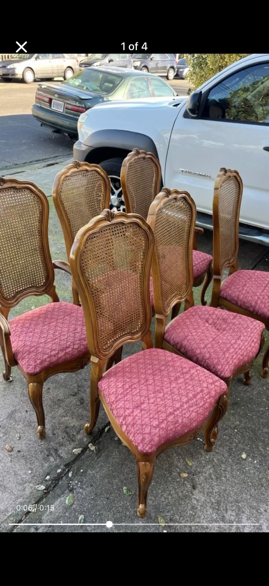 I have 6 matching cane back chairs in really good shape. The seats could use recovering, but other than that, the condition is very good. Medium walnut in color, all the cane is intact, no holes, denting, or bulging. Priced very fairly, please don’t lowball. Yes, they’re available until I post them as sold. Pick up in Elk Grove. Zelle, Venmo, or good ole cash. Thanks for looking.