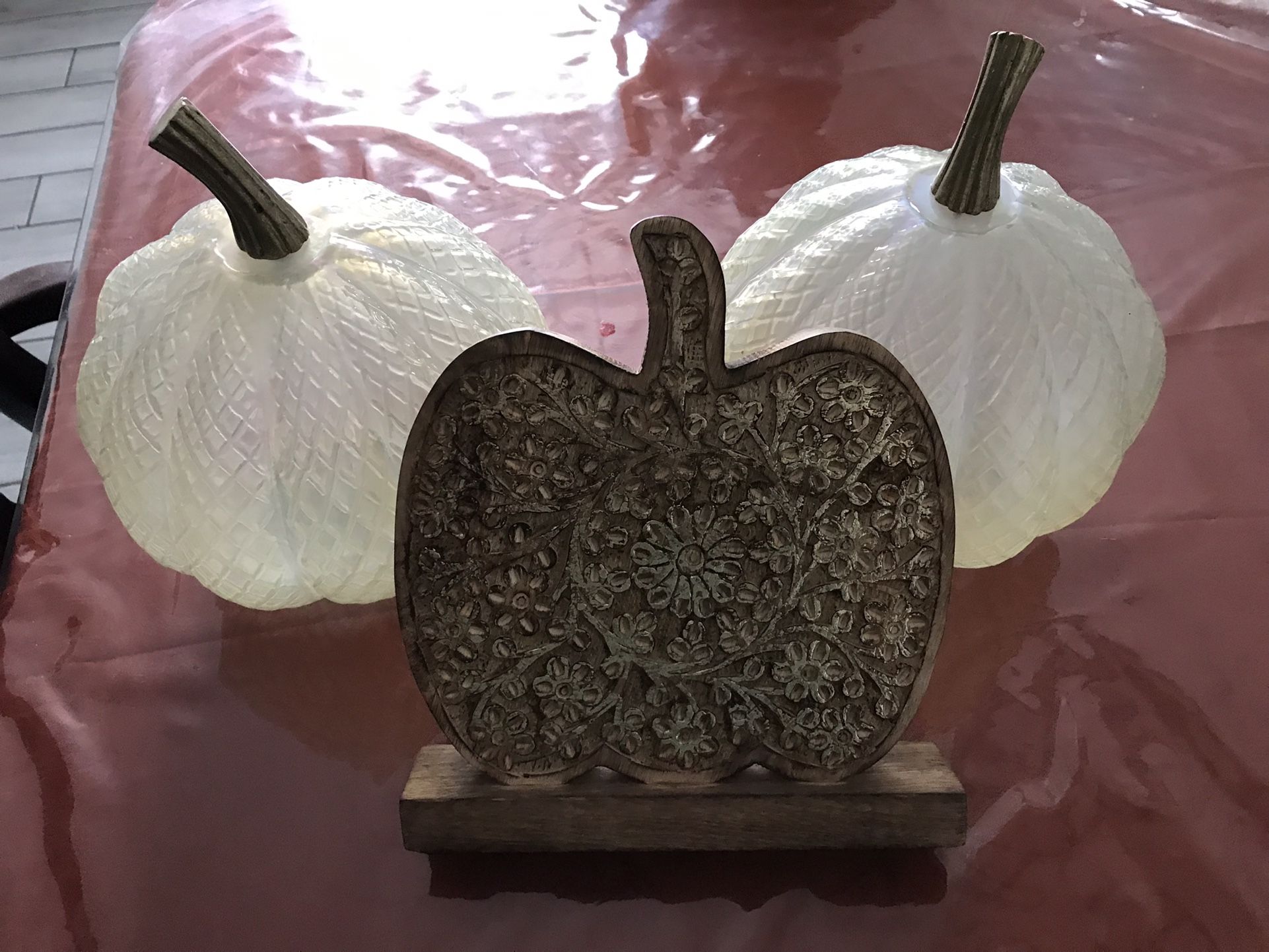 Glass pumpkins and wood pumpkin 🎃 $40 obo Thanksgiving Acción de Gracias
