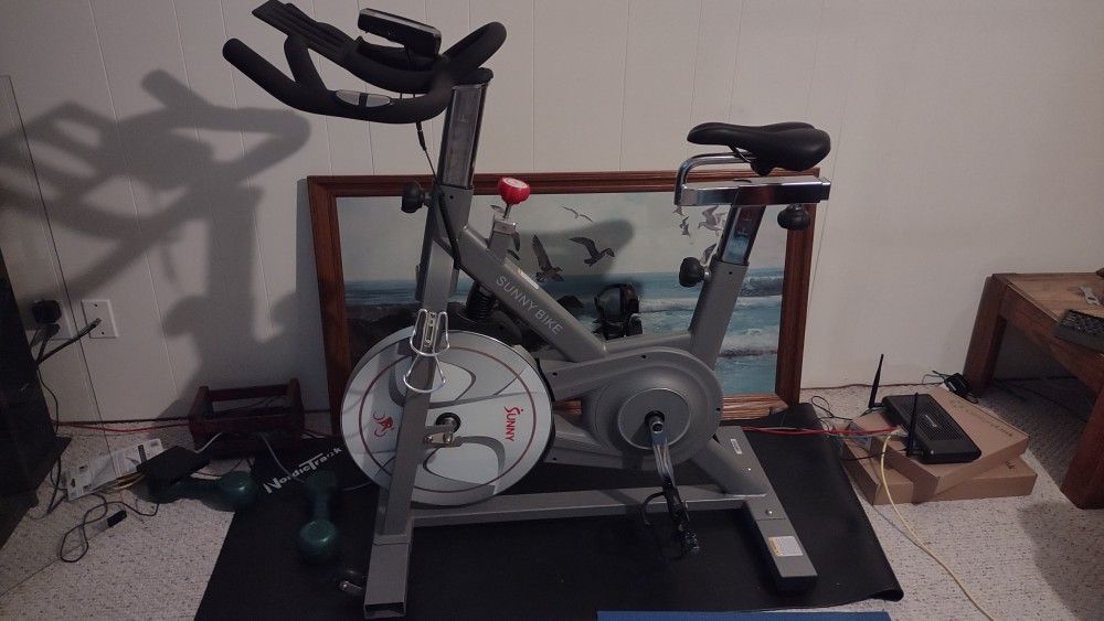Moving Sale Sunny Bike in excellent working condition. Very smooth and quiet! Magnetic Resistance This model, SF-B-1851 is selling for $600 on Amazon: https://offerup.com/redirect/?o=aHR0cHM6Ly93d3cuYW1hem9uLmNvbS9TdW5ueS1IZWFsdGgtRml0bmVzcy1TeW5lcmd5LU1hZ25ldGljL2RwL0IwN1o0NVIxUlQvcmVmPW1wX3NfYV8xXzE/YWRncnBpZD0xODYwMjAwMzE1ODkmZGliPWV5SjJJam9pTVNKOS5TLVotTFhBWWtYMWdOeUpyNEFPbDBBLllLYWhGbk9sOUxZXzJUdWtvUU9MMkhxQ3RaYzNOT3VtRDZESEN3d1Y3V0kmZGliX3RhZz1zZSZodmFkaWQ9Nzc5NjQ4NDE2MjM5Jmh2ZGV2PW0maHZleHBsbj0wJmh2bG9jcGh5PTkxOTI0NjQmaHZuZXR3PWcmaHZvY2lqaWQ9MTI3NzMwNDI1ODM5NTQyNjI2MjMtLSZodnFtdD1iJmh2cmFuZD0xMjc3MzA0MjU4Mzk1NDI2MjYyMyZodnRhcmdpZD1rd2QtMTAyMTIxNzgwNTk2OSZoeWRhZGNyPTE3MzQzXzEzNzUwMzEzXzEzMjUxMDIma2V5d29yZHM9c3Vubnkrc2YtYjE4NTEmbWNpZD1mNWZjOWMzNzE0NWYzMTdkYmZjZjBiMmY5OTU3NzY2YiZxaWQ9MTc2NjI4MTA0MiZzcj04LTE= HAS STRAPS ON PEDALS so that you don't have to worry about your feet coming off the pedals WATER BOTTLE HOLDERS on BOTH sides Electronic Display with calories, distance, speed, elapsed time, etc. Adjustable soft seat COOL FEATURE: Handles have sensors which measure pulse and heart rate (last picture). Placing your palms on the handles will measure pulse/heart rate which is a very cool feature!