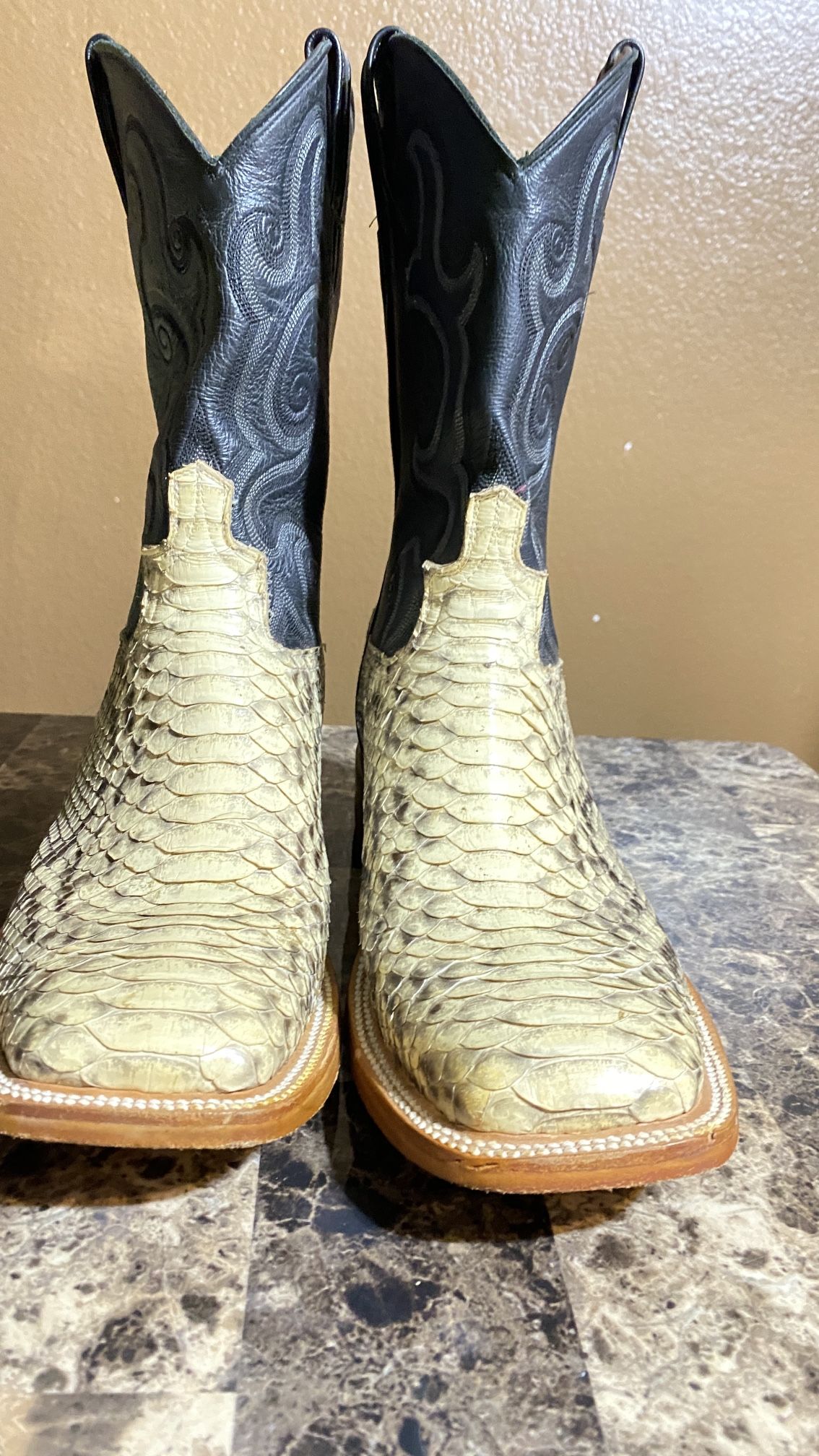 The boots are like new, I just used them twice. They are 100% original Python skin. Las botas están como nuevas nomas las use 2 veces. Son de piel de Python 100% originales. Size:10.5