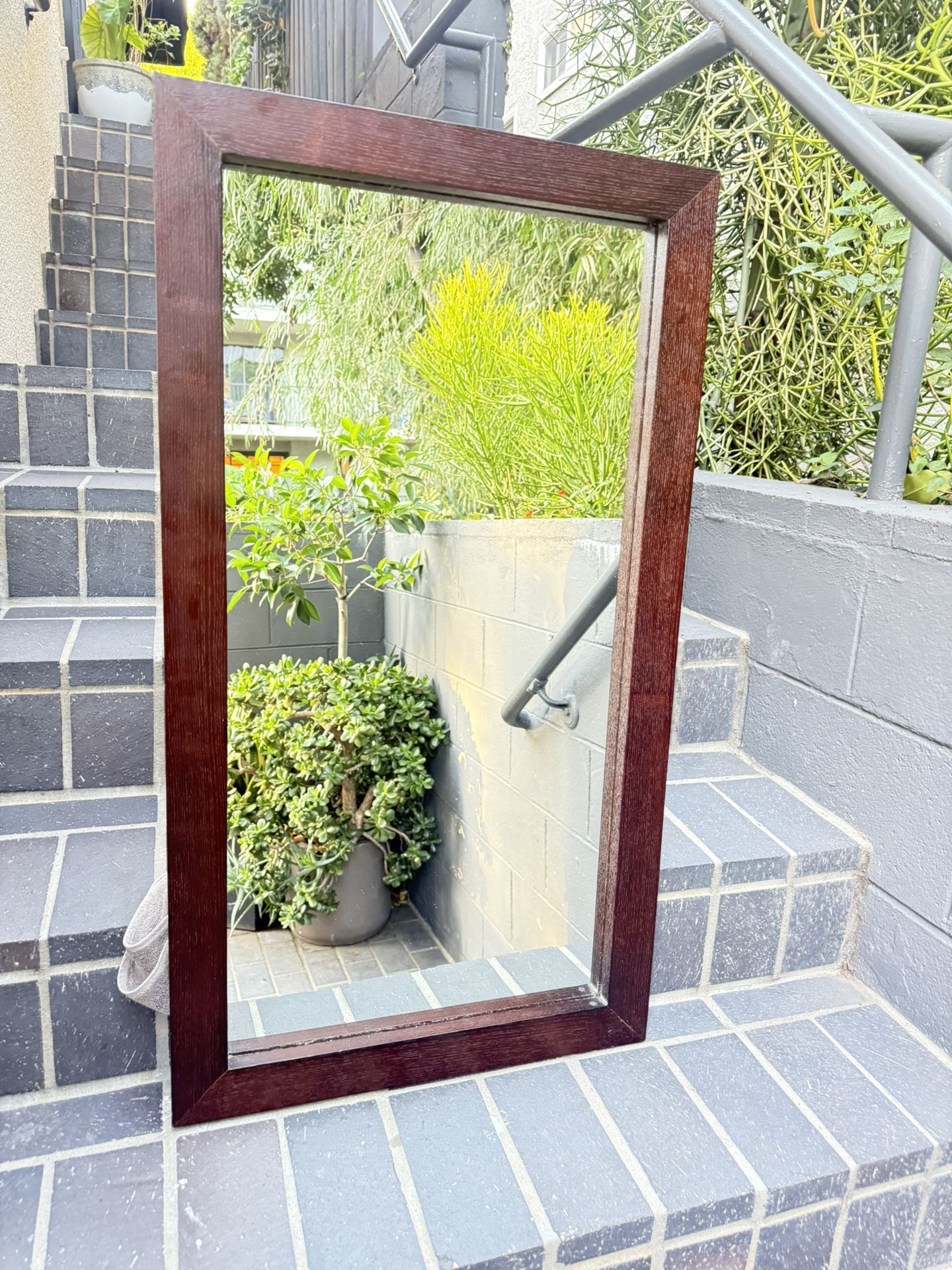 Pottery Barn Wall Mirror features: - Excellent overall condition - Issues: a few minor scratches - Classic rectangular wood frame measures 2” across and features dovetail joints at each corner - Anchors on both the length and width allow flexibility to display with portrait or landscape orientation - Dims: 19-3/4”W x 35-3/4”L x 1-1/4”D - MSRP: $399