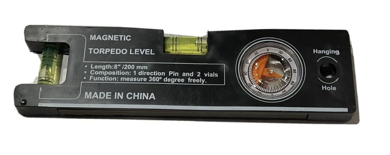Magnetic Topedo Level 8” New in The Box. How's This For Precision: This Handy 8" Level Offers A One Direction Pin And 2 Vials; Measures 360 Degrees Easily And Accurately. Includes A Handy Hanging Hole. 8" Long Measures 360 Degrees Vials In Two Directions Features Direction Pin Magnetic Brand new in the box- would make a great gift for the person who loves tools. Comes from a smoke free, pet free home