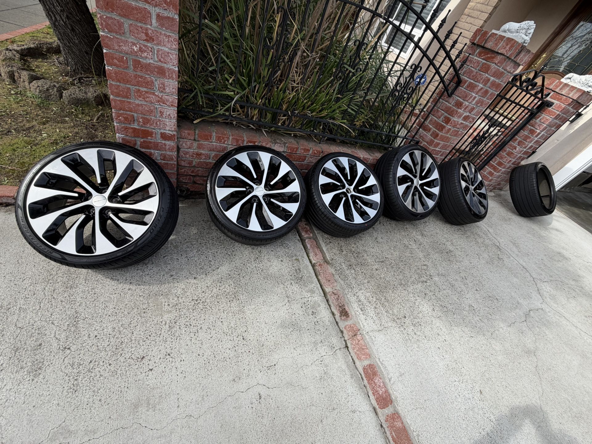 Lucid Air Grand Touring Tires: 3 Front Wheels And Tires, 2 Rear Wheels Plus One Extra Tire
