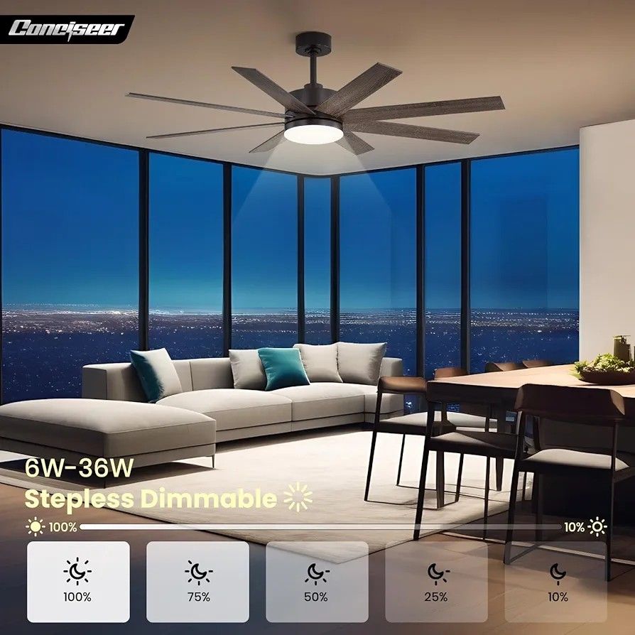 60 Inch Ceiling Fans with Lights and Remote, Dual Color 6 Blades, Bedroom Living Room Office Library Cafe Outdoor Industrial, 3CCT Dimmable, 6 Speed Reversible Quiet DC Motor, Brown/Wood Grain