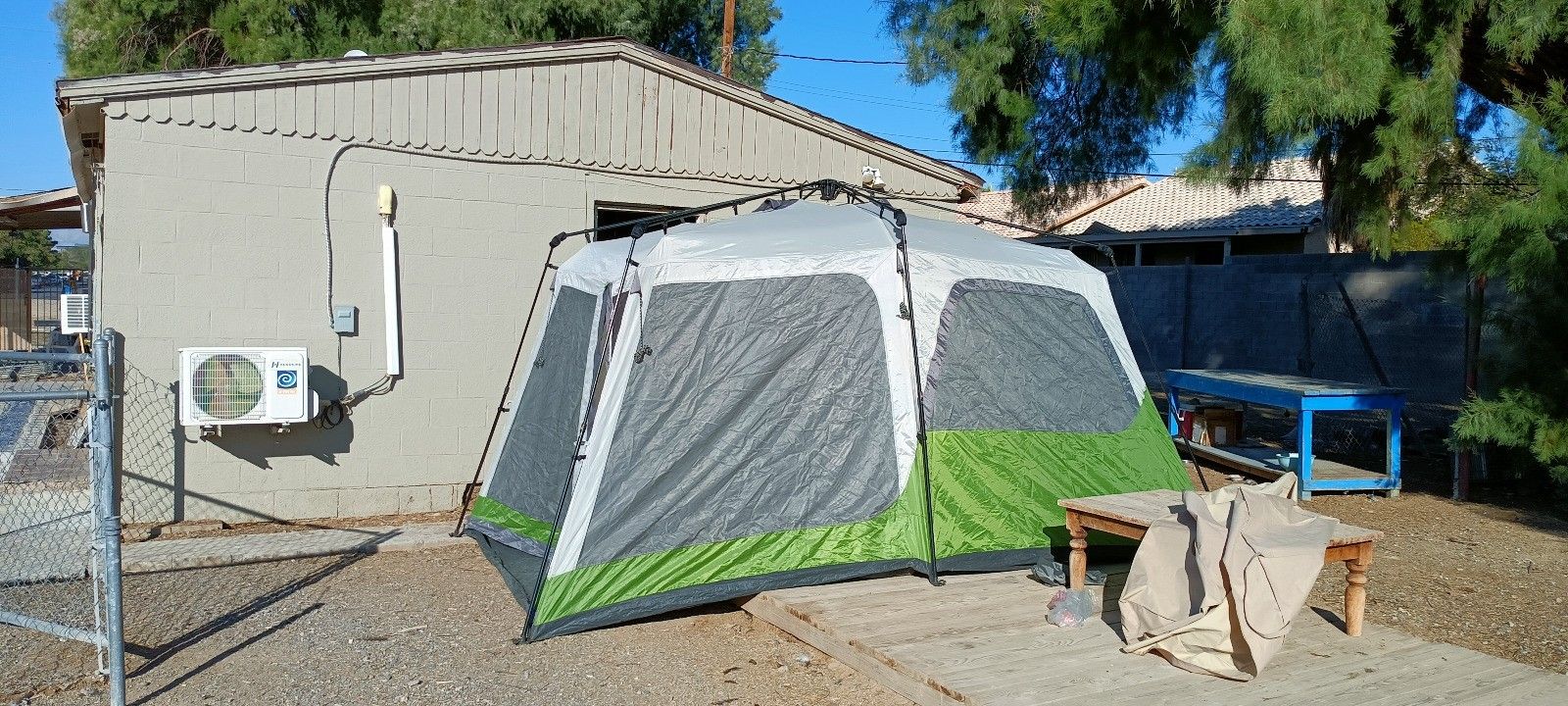 Unused Coleman tent . 6 person pops up easy for set up IF THE POST IS UP it's AVAILABLe . The price is firm and more than reasonable . Low ballers will be IGNORED!!! Thanks π