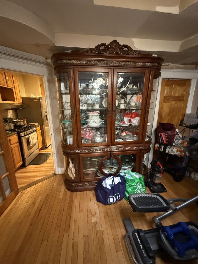 Elevate your home with this stunning solid wood china cabinet, featuring intricate hand-carved details, curved glass doors, and spacious shelving for displaying fine china, collectibles, or glassware. The craftsmanship highlights quality hardwood construction, ensuring durability and timeless appeal. - Material: Solid wood (not veneer) - Design: Ornate carvings, curved glass panels, and elegant trim - Storage: Multiple glass shelves with enclosed display space - Condition: Excellent overall, glass intact, wood well-maintained