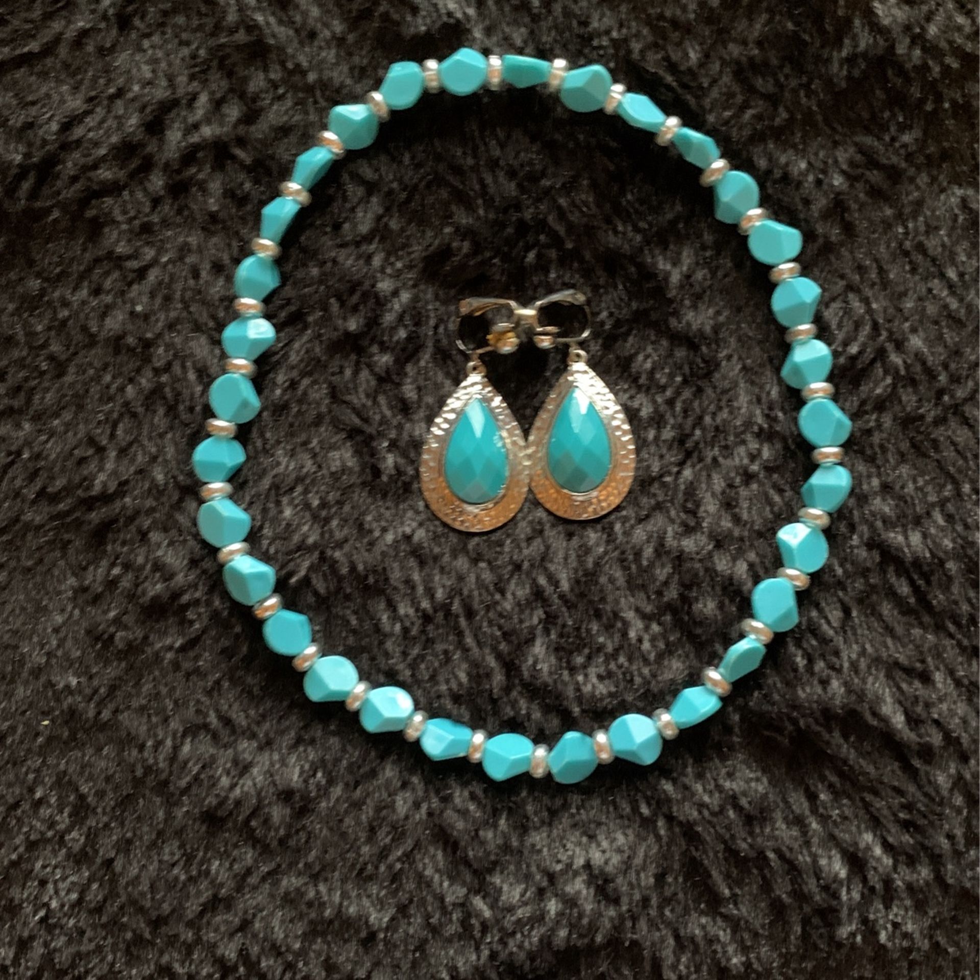 LDS Turquoise stretch necklace and clamp on ear set