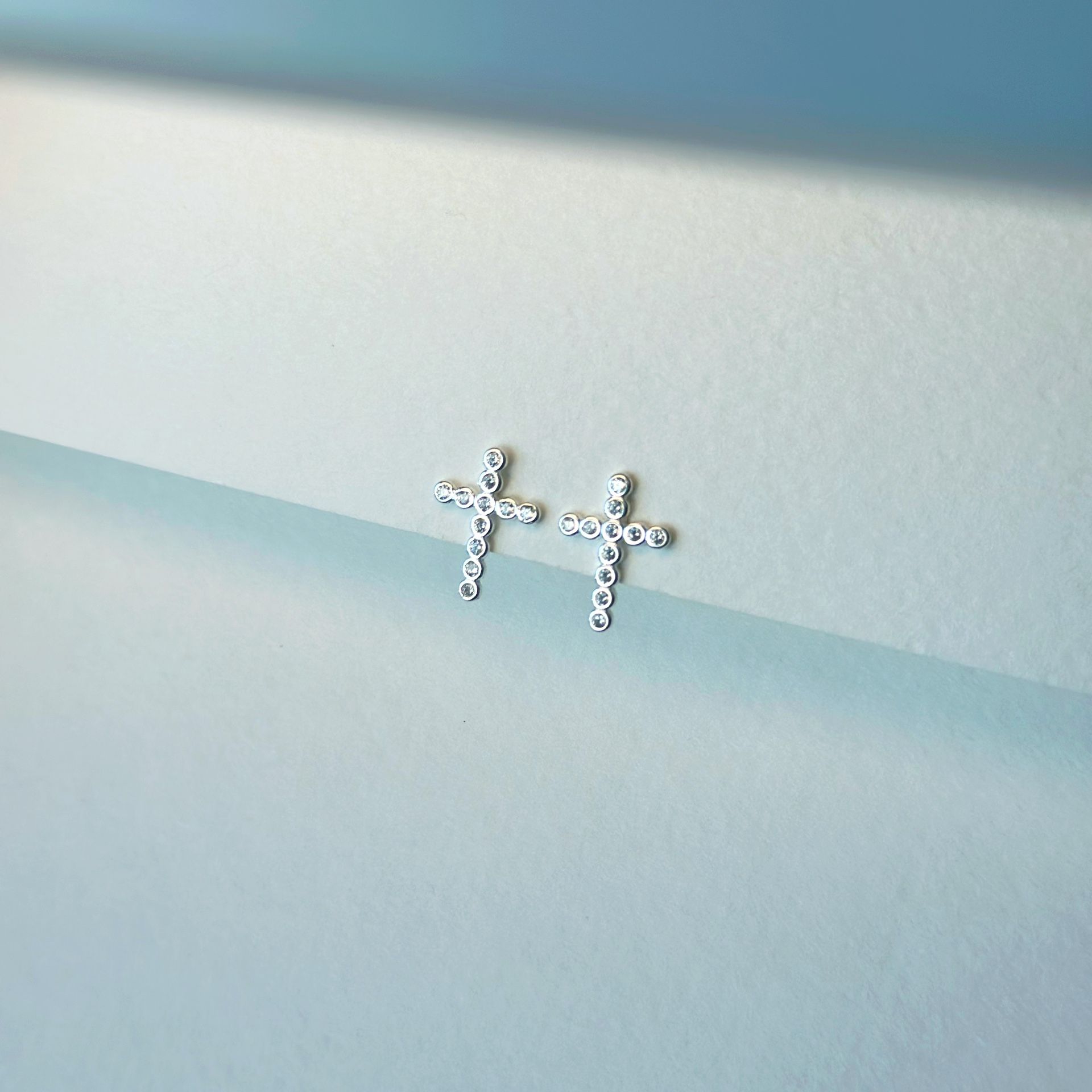 925 Sterling silver zircon cross earrings