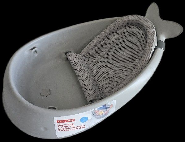 3-Stage Convertible Design: Crafted to grow with your baby, our versatile bathtub supports newborns, infants, and sitters. It adapts across 3 stages—Newborn (0-3 months; up to 15 lbs.), Infant (3-6 months; up to 20 lbs.), and Sitters (6m+; up to 25 lbs.) Smart Sling for Adjustable Comfort: The Mesh Smart Sling provides Comfort-Edge support. It locks into two ergonomic positions: an upper position for full-body cradling of newborns and a lower position for securely supporting infants as they learn to sit Easy Transition for Sitters: Once your baby is ready to sit upright, the Smart Sling can be removed entirely, providing a spacious and comfortable tub. With no uncomfortable plastic bumps, it offers a smooth and roomy bathing experience for older babies Convenient & Space-Saving Design: Our tub includes a swivel hook for easy hanging on a shower head, shower bar, or towel rack, allowing quick drying and space-saving storage. Plus, the non-slip interior and drain plug ensure hassle-free bathing Lightweight & Compact: Weighing only 3.6 lbs., our MOBY tub is easy to lift and move while remaining sturdy enough for everyday use. Its sleek and modern design fits seamlessly into any bathroom. Size (inches): 27.5L x 19W x 11.5H Coordinates with Skip Hop MOBY Bath Collection: Our tubs seamlessly coordinate with other tub time must-haves from the Skip Hop MOBY Bath Collection to add a cohesive and playful touch to your baby’s bath routine