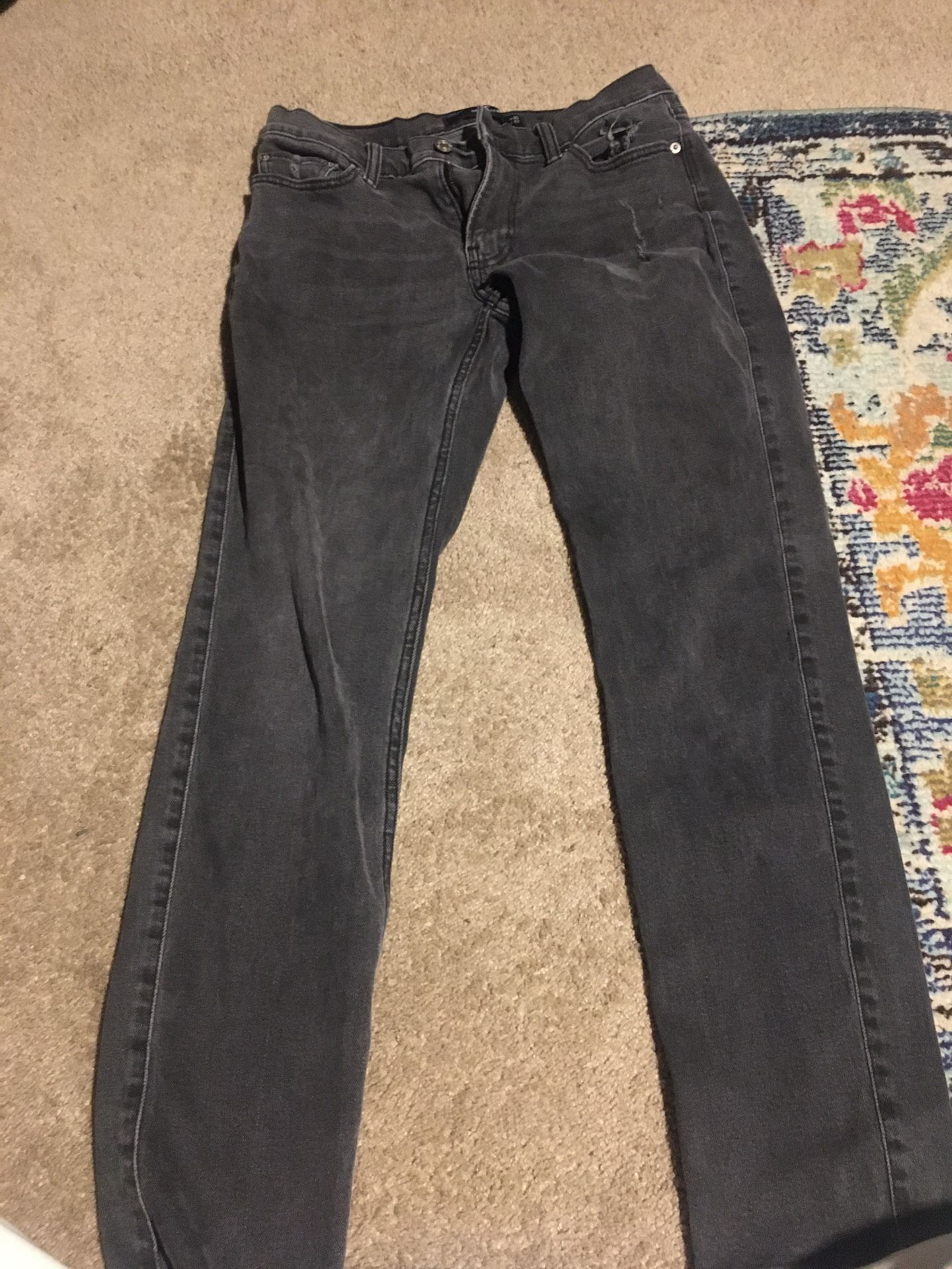 Hollister dark gray jeans, size 30 x 32, recommend to be washed before used since it’s old. Need any more pictures ask!