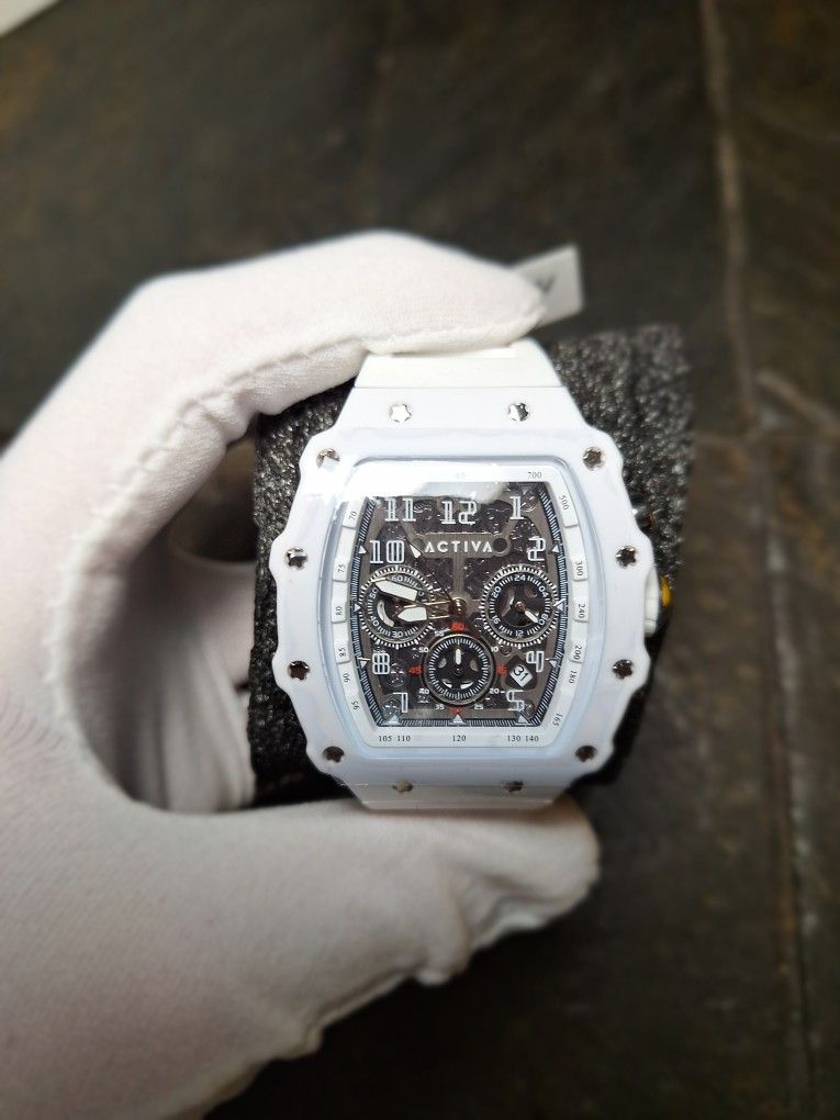 White and black Activia watch with a sporty, streetwear vibe #streetwearwatch Movement: The watch uses a precise quartz movement for reliable timekeeping. Case Details: It features a 44.3mm (or 44mm) white case made of PC (polycarbonate) material, with a case thickness of 17mm. Dial & Display: The watch has an analog display with a white skeleton dial pattern and arrow markers. The dial is protected by a highly resistant crystal. Strap/Bracelet: The strap is a white band made of high-quality silica gel/silicone, known for its durability and comfort. The strap is 25mm wide and 188mm long. Water Resistance: It is water-resistant up to 5 ATM (50 meters), making it suitable for daily use and splashes, but not for swimming or diving. Crown: It features a push crown design for simple and efficient operation. Warranty: All Activa x Invicta watches come with a standard 2-year warranty from the date of purchase. Comes With Gift Box #Invicta #mensaccessories #watch