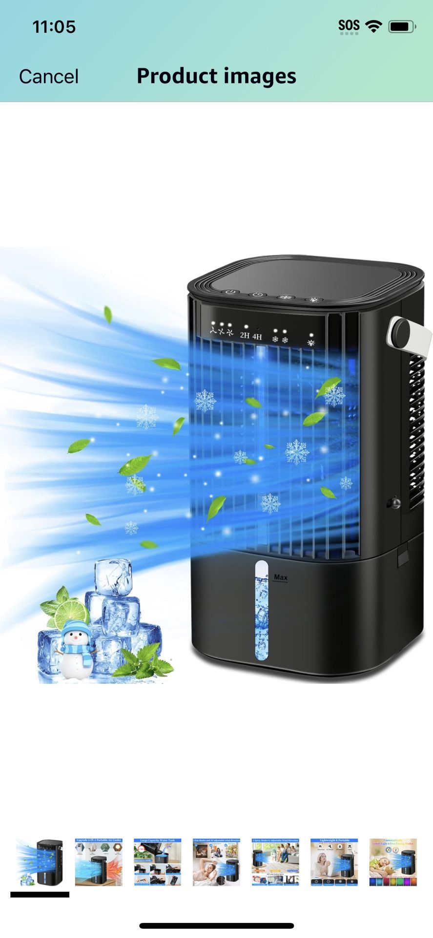 Portable Air Conditioners-Upgraded Evaporative Air Cooler,Portable AC with 3 Wind Speed & Mist, Mini Cooling Fan Personal Air Conditioner with 7 Night Light & 2-4H Timer for Bedroom Office Home-Black