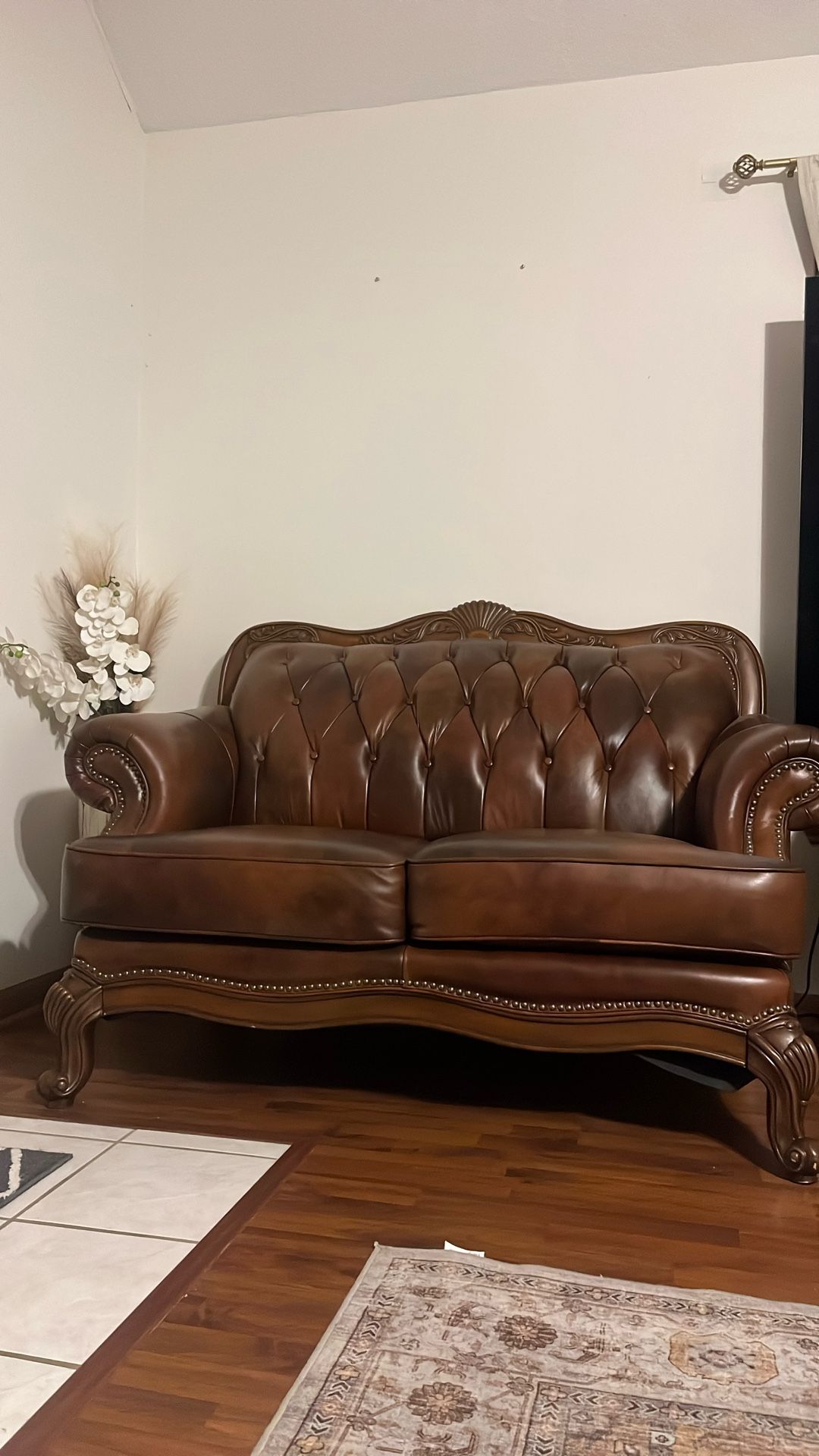 Coaster Victoria Leather Tufted Upholstery Loveseat in Brown