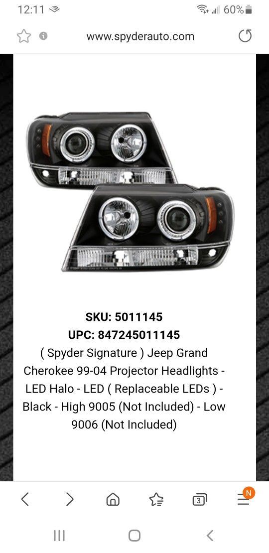 New, 2002 Jeep Grand cherokee, Halo Headlights