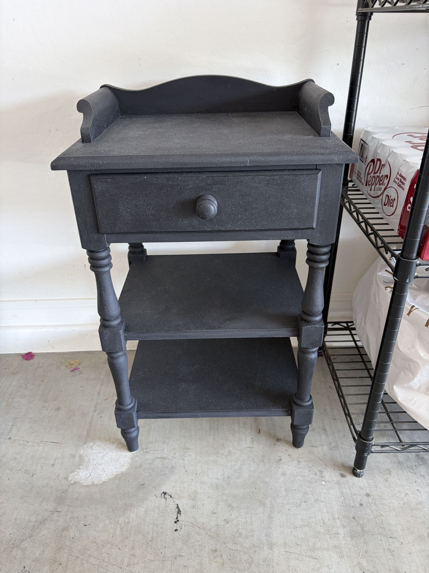 Ethan Allen nightstand in a blackish charcoal color. Excellent condition. Measures 19w x 15d and 28 high. Asking $40