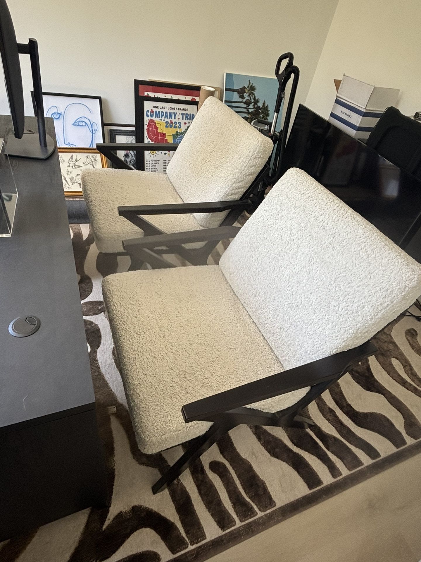 Originally $559 for both - selling for $80 total. Really great chairs for your living room or office! Love them and they have washable cushion covers - they just no longer feel like our style.
