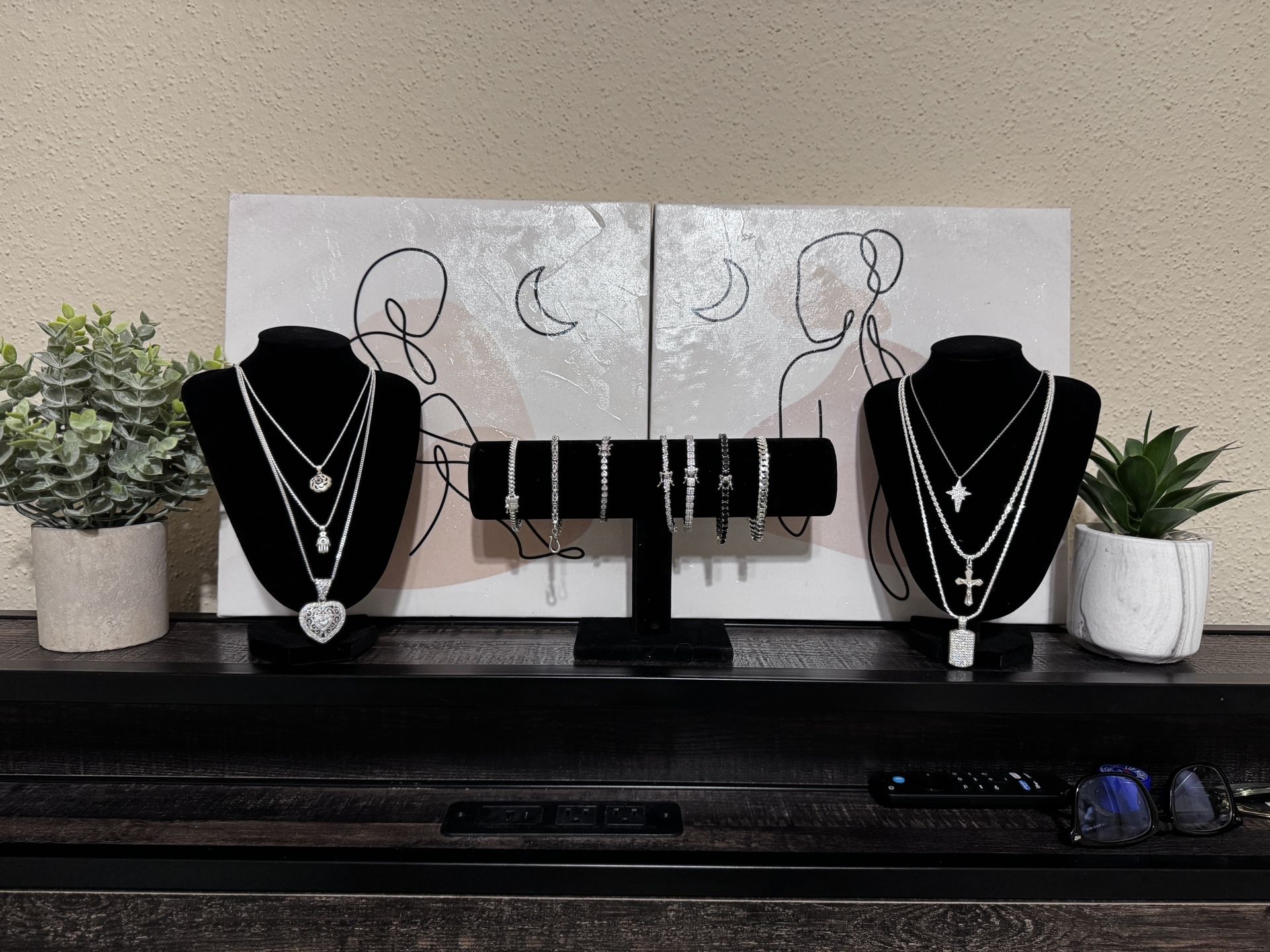 For more info feel free to dm me w. Questions. All necklace pendants set are 40 and up bracelets 35 and up. Evil eyes are 10 and up and I have plenty more items. Everything is brand new never worn straight from the jeweler.