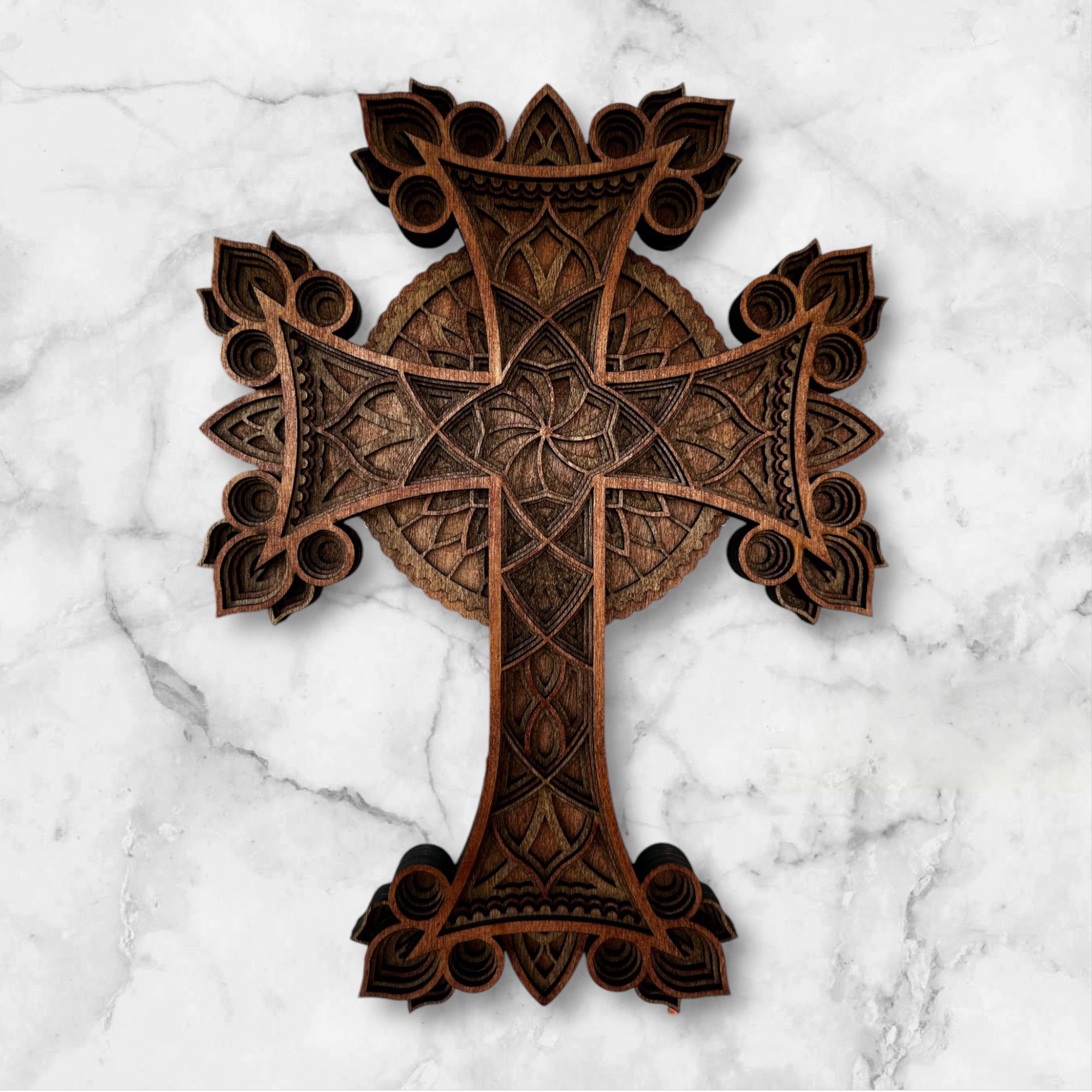 Introducing our exquisite layered wood cross, meticulously handcrafted in the heart of Las Vegas. Showcasing intricate layers and a beautiful finish that highlights the natural grain of the wood. Perfect for adding a touch of elegance and spirituality to any space, this unique cross makes a meaningful gift or a cherished addition to your home decor.