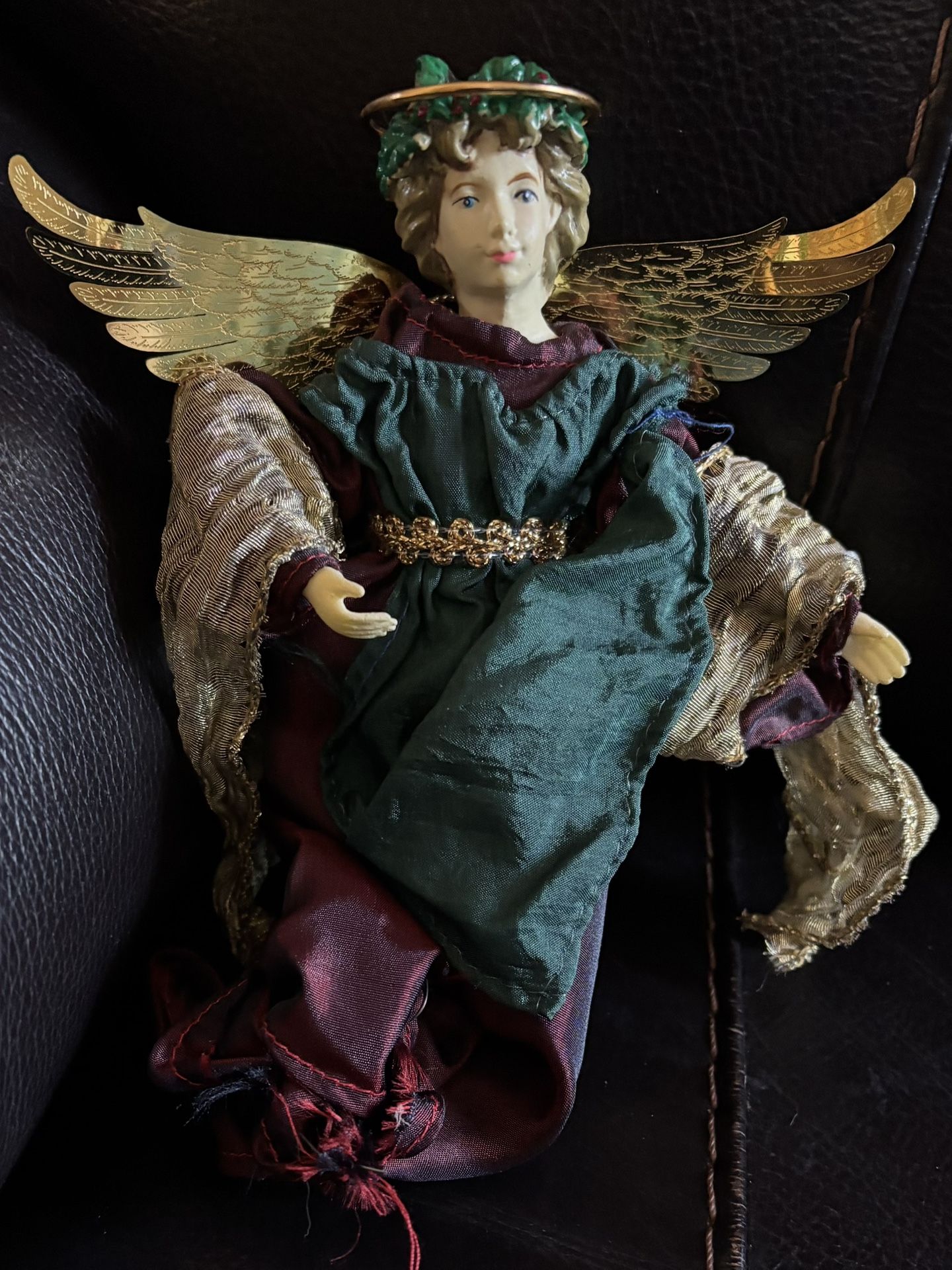 Vintage tree topper or ornament . Face and hands are porcelain.