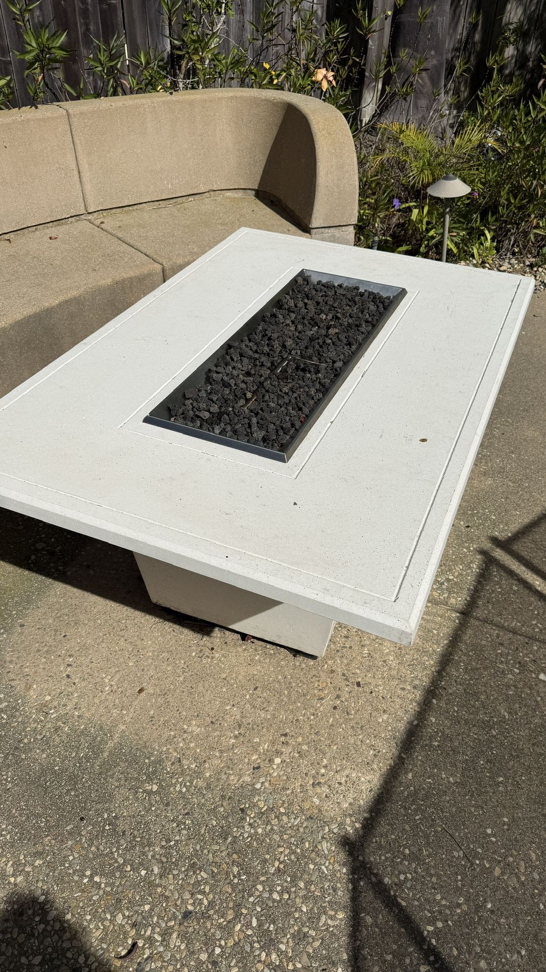 American Fyre Designs Cosmopolitan Rectangle Fire Table in White Aspen with black cover. Used once. Excellent new condition. 53”x35”x24”