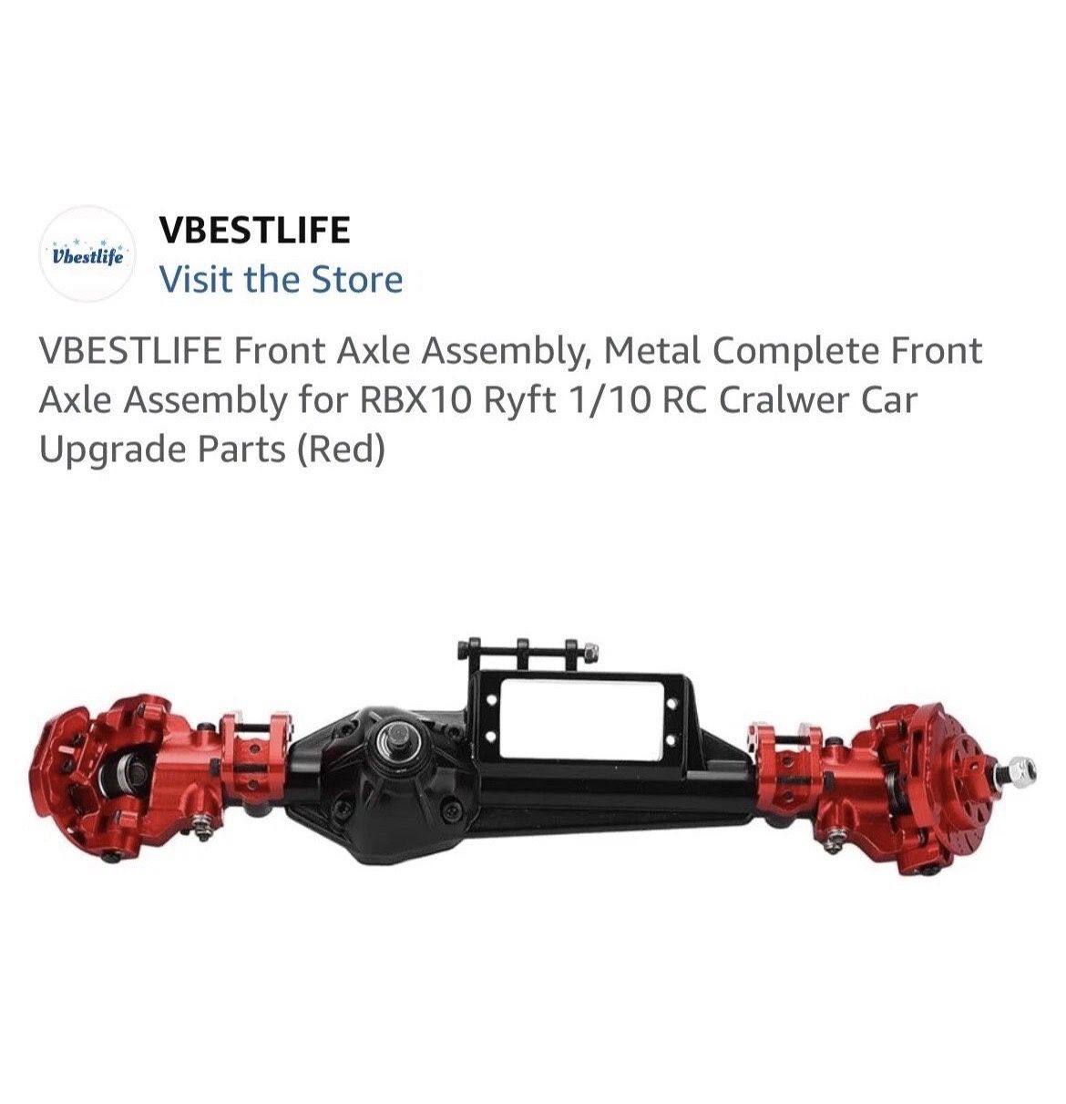 VBESTLIFE Front Axle Assembly, Metal Complete Front Axle Assembly for RBX10 Ryft 1/10 RC Cralwer Car Upgrade Parts (Red)