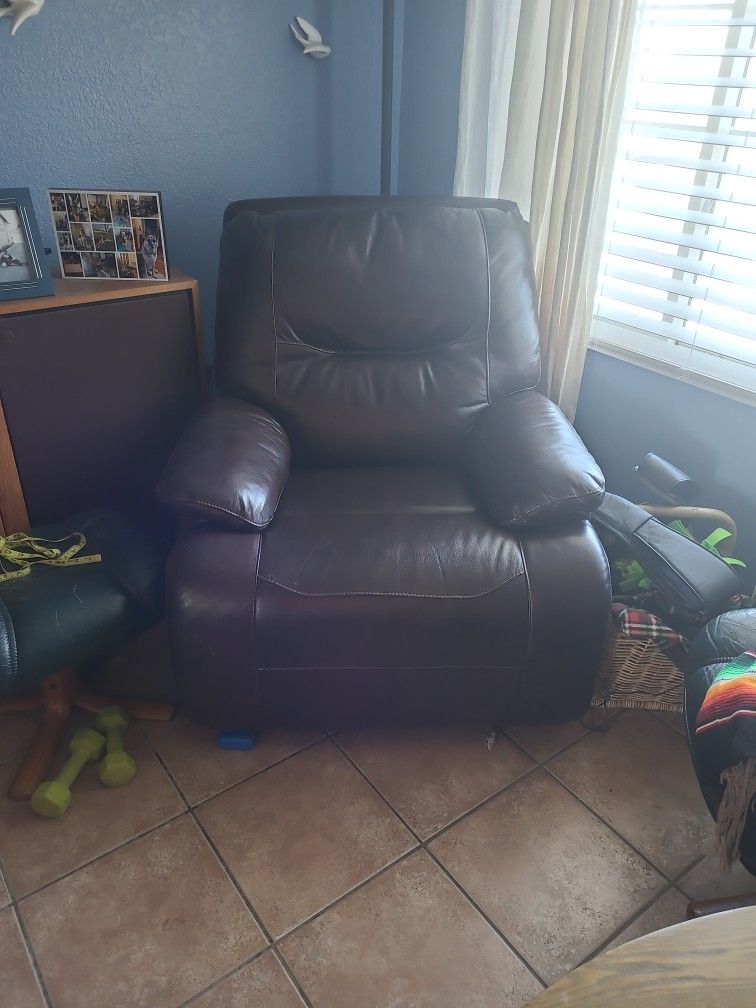 Free brown leather recliner barely used. Like new condition. 36in wide 38 inches deep