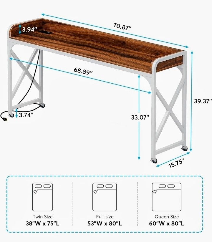 Tribesigns Over Bed Table with Wheels, 70.8/'' Overbed Desk Outlet & USB, Mobile Queen Size White Metal Legs for Bedroom, Rolling Tray Living Room, Hospital, Dark Walnut, Dark Walnut and White. Paid $149.99 for sale $100.00 firm. El Cajon CA area must be picked up at our location. Excellent condition like new