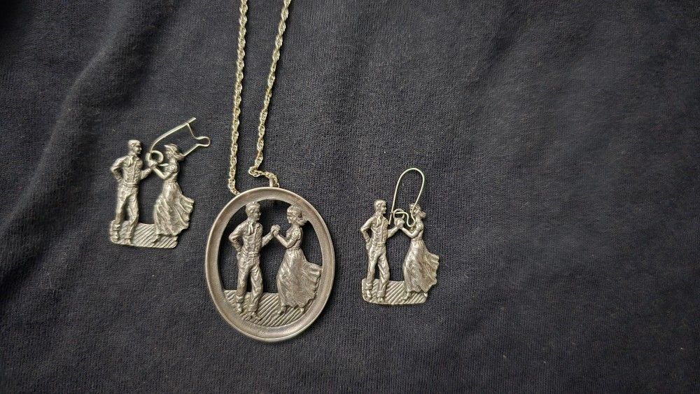 Vintage elegant ballroom dance couple sterling silver earrings and pendant set. Excellent condition. Most likely from 1962 era, very rare find!! It's marked STERLING twice!!! Can be shipped if the buyer pays shipping, otherwise pick up in smoke free pet free home in woodbridge va