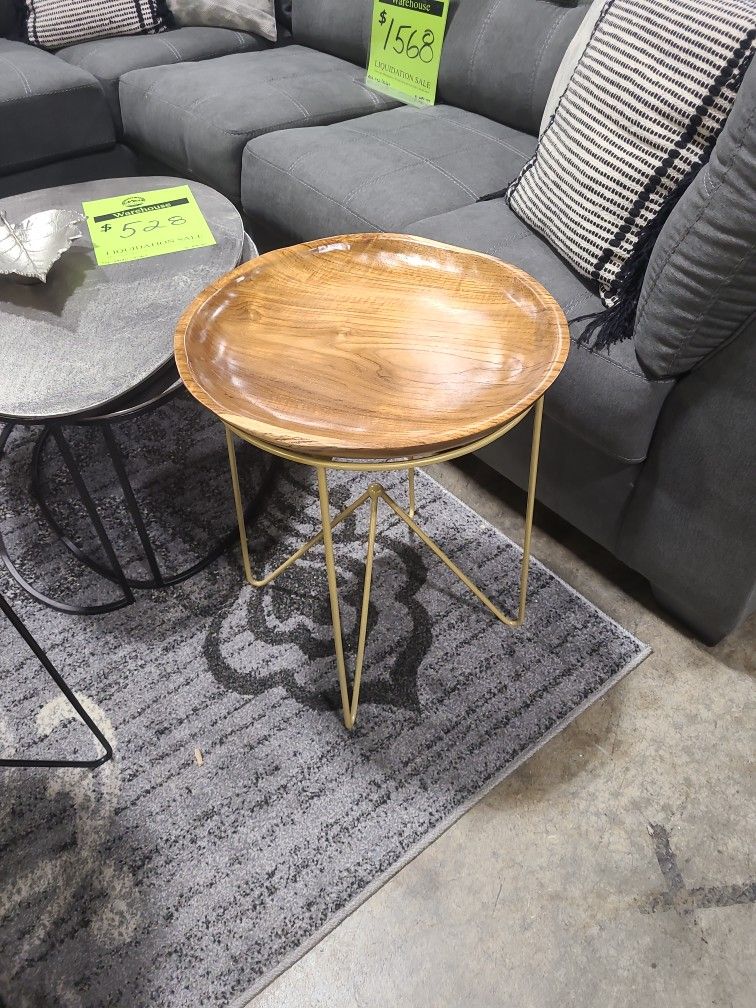 Teak bowl like end table. 2 color options for base. Each one 1 of a kind