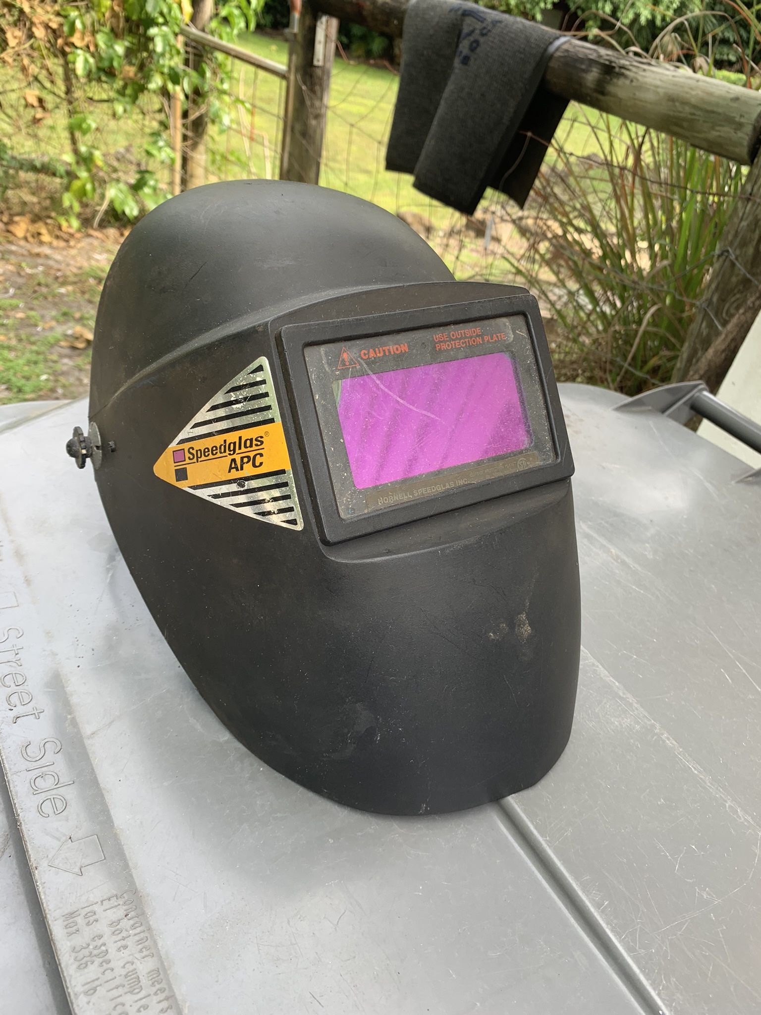 Two welding helmets, white hard hat .$100 obo Speedglas APC Hard hat
